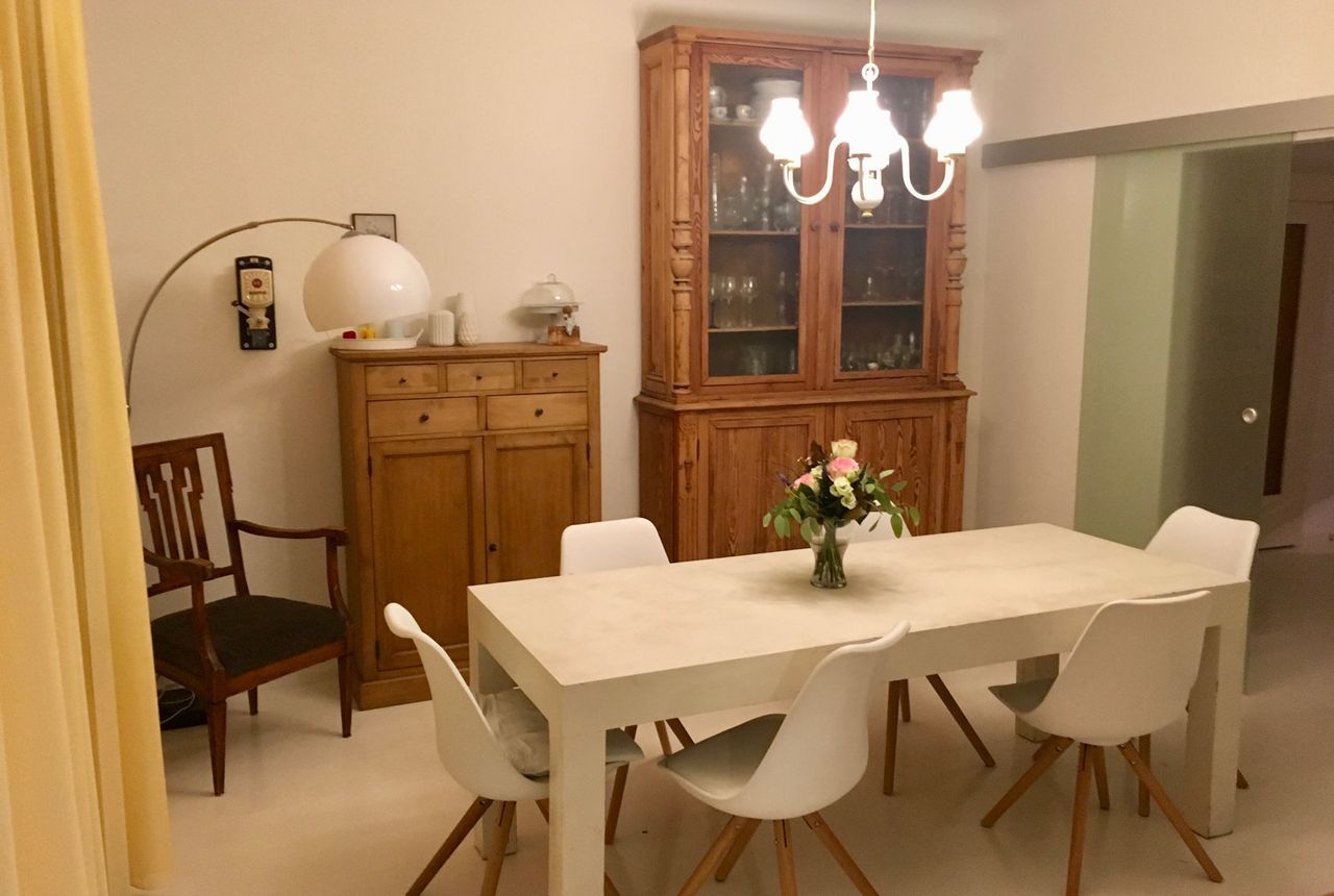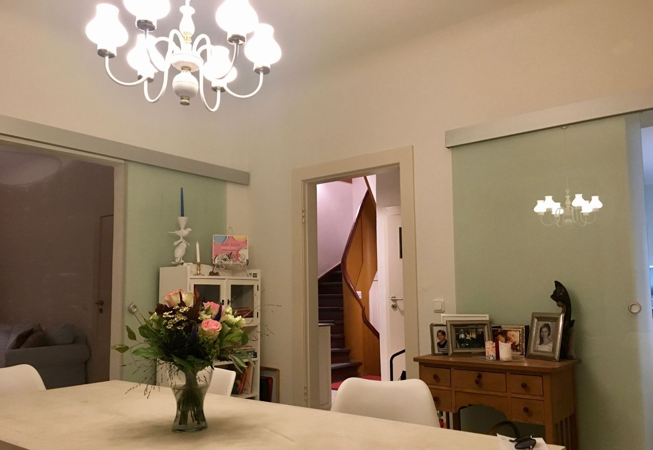 Im Erdgeschoss großes Wohnzimmer und Esszimmer getrennt durch eine Glasschiebetür und moderne Küche. Äußerst hell und gut von außen aus dem Garten bzw. Vorgarten beleuchtbar. Dazu ein charmanter großer Wintergarten mit angeschlossener Hochterrasse.