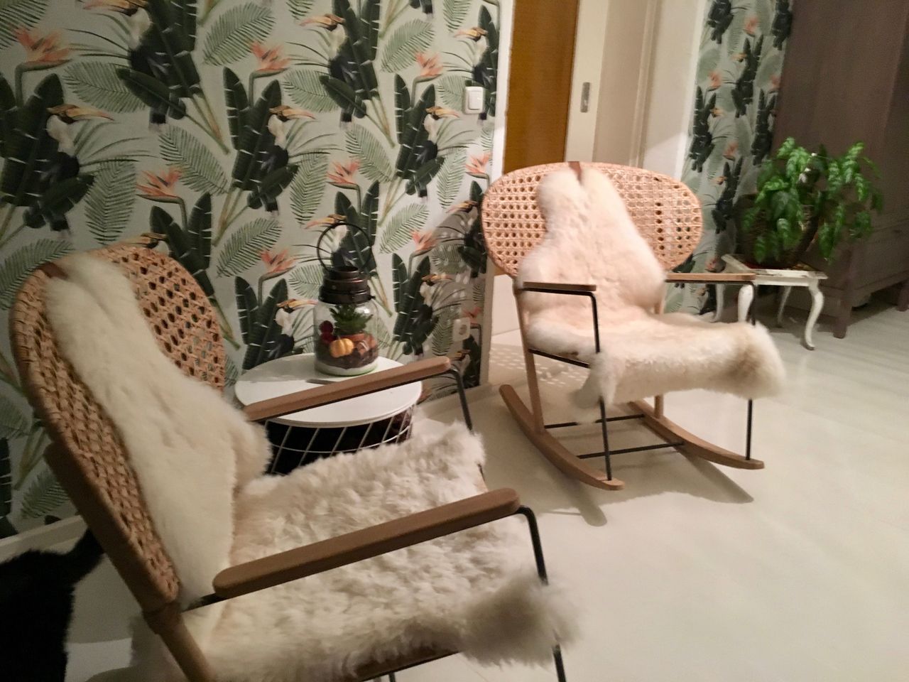 Hochwertige Ausstattung mit weiß gestrichenem Dielenboden und ansprechender Küchenausstattung.