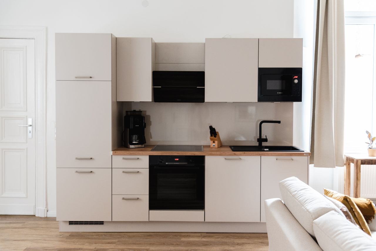 Willkommen in unserem frisch renovierten und luxuriösen Apartment im Herzen von Mitte! Mit 130m² bietet unser geräumiges Apartment Platz für bis zu neun Gäste. Es besteht aus zwei separaten Apartments, die durch eine Verbindungstür miteinander verbunden sind: 40m² und 90m².