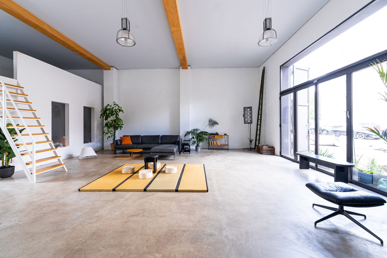 2 große Räume a 100 qm, hohe Decken, viel Flair. Viele Möbel im Fundus. Sehr flexibel. Große Schiebetür nach draußen, direkt zu beladen.