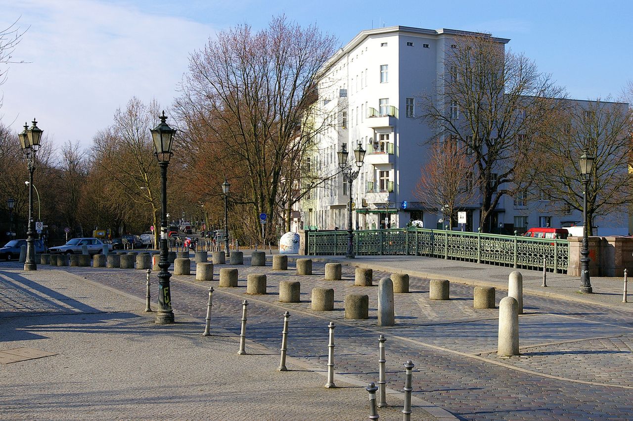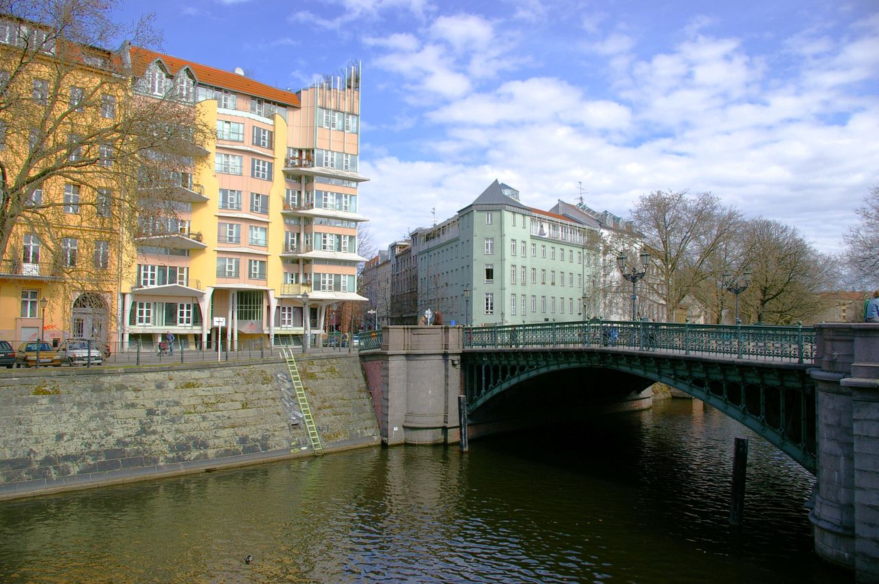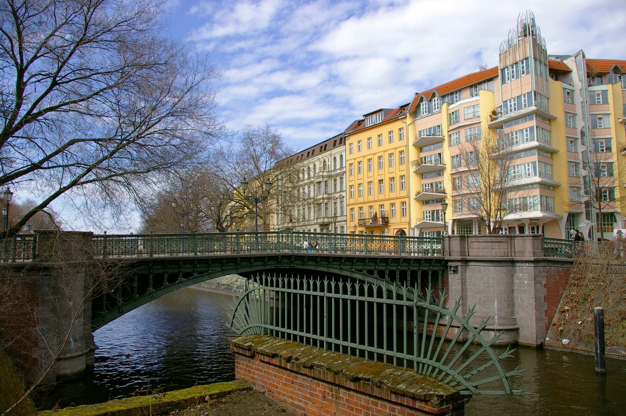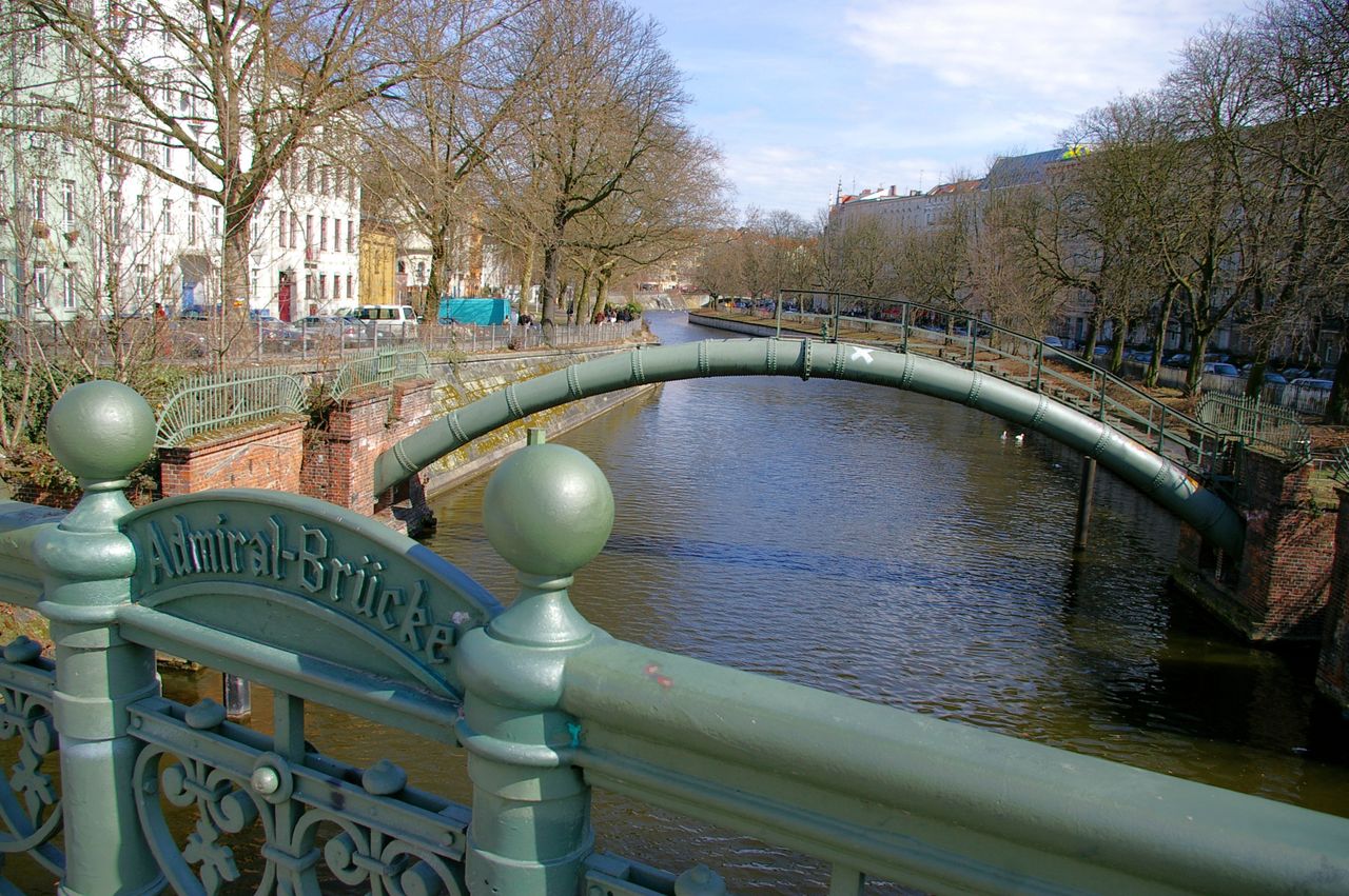 Kleine Brücke über den Landwehrkanal in ruhiger Wohngegend in Kreuzberg