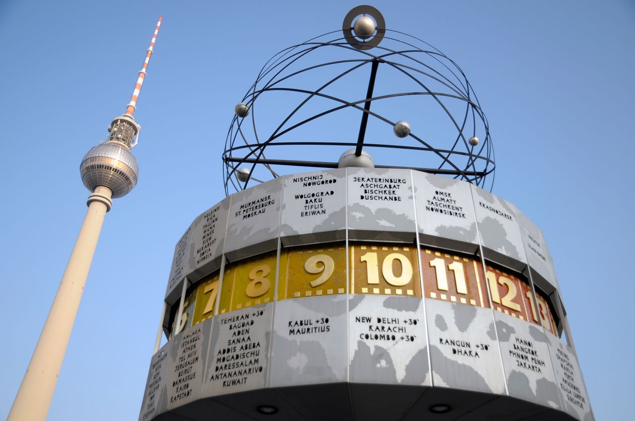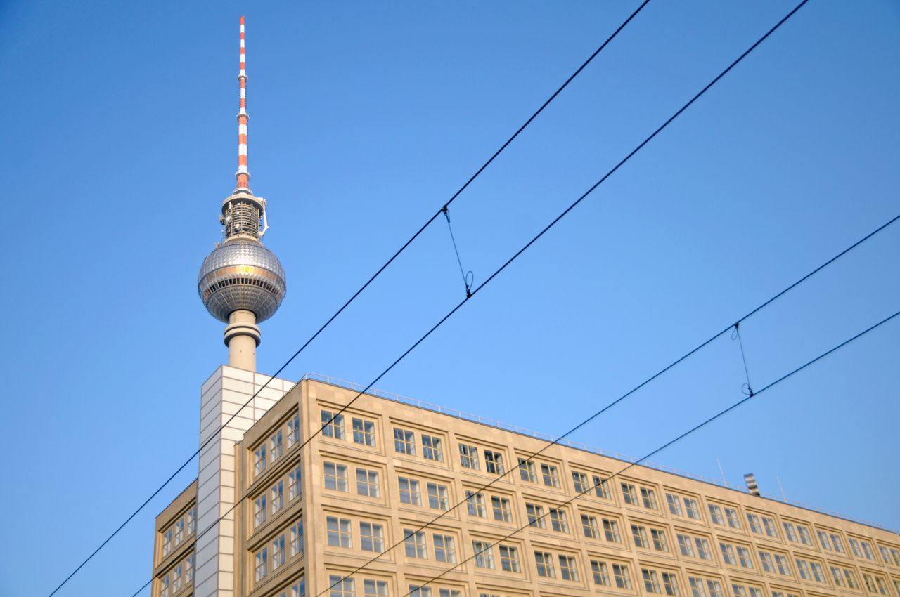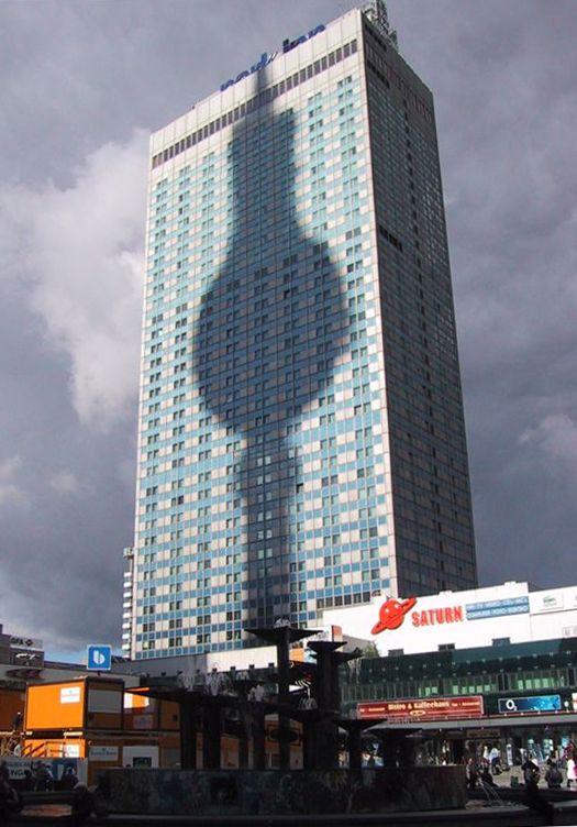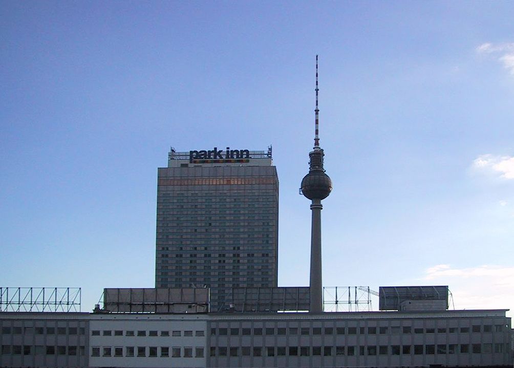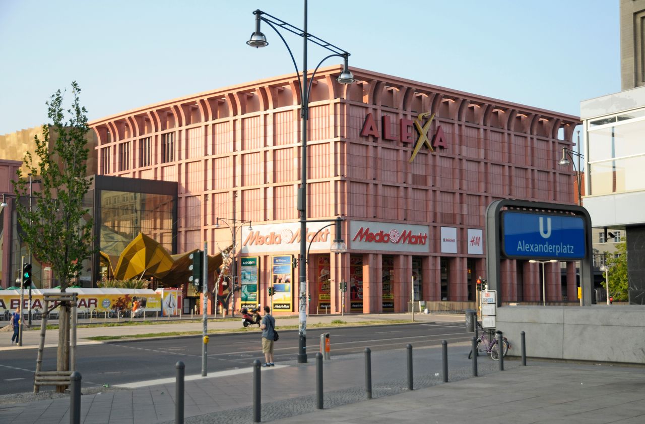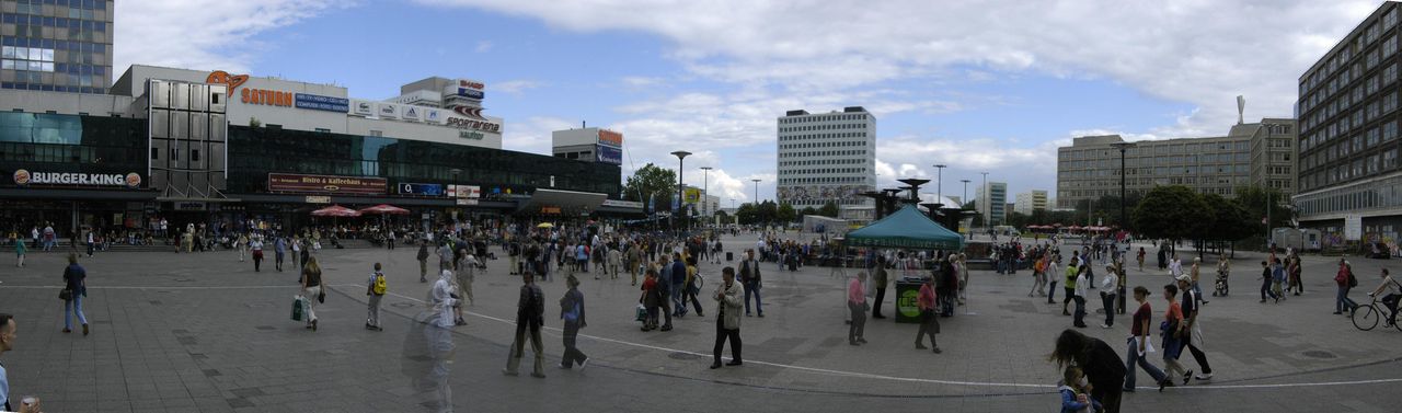 Moderne sozialistische Bauten, kein Grün, Kaufhäuser, bunte Reklameschilder, Imbissbuden, diverse Cafés, Weltzeituhr, Straßenbahn