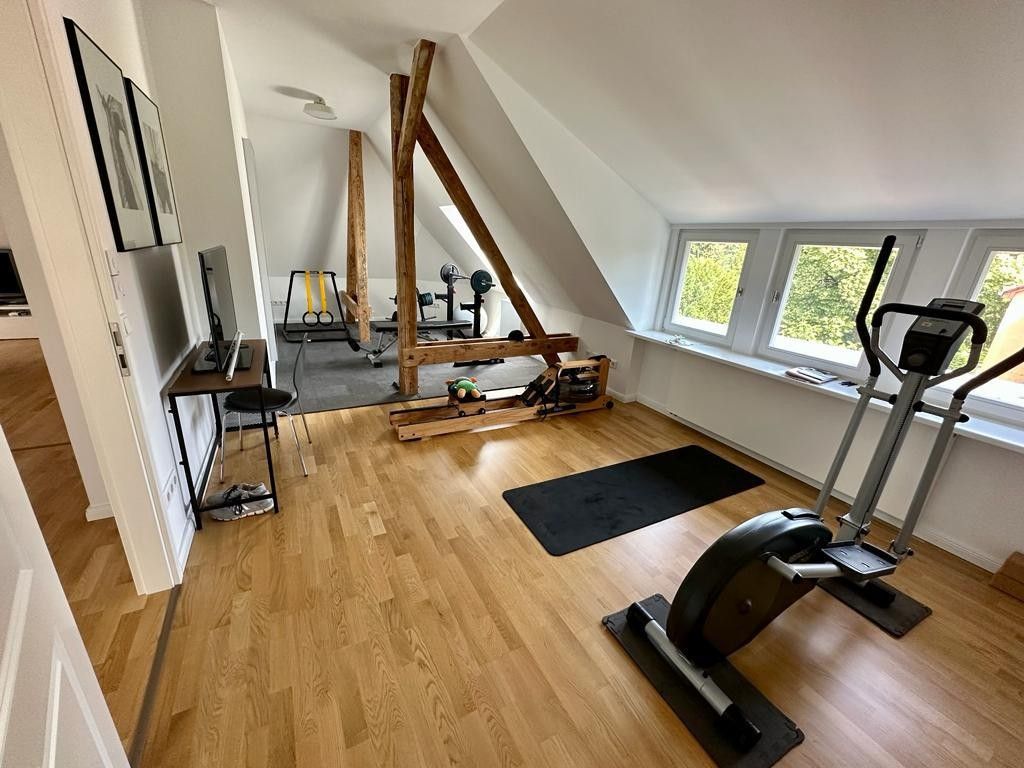 Das 2. OG ist eine volle Etage mit hohen Decken und modernem Ausbau. Hier befinden sich weitere 3 Schlafzimmer mit sichtbaren Holzbalken und 2 Bädern. Zusätzlich steht ein kleines Büro zur Vefügung.