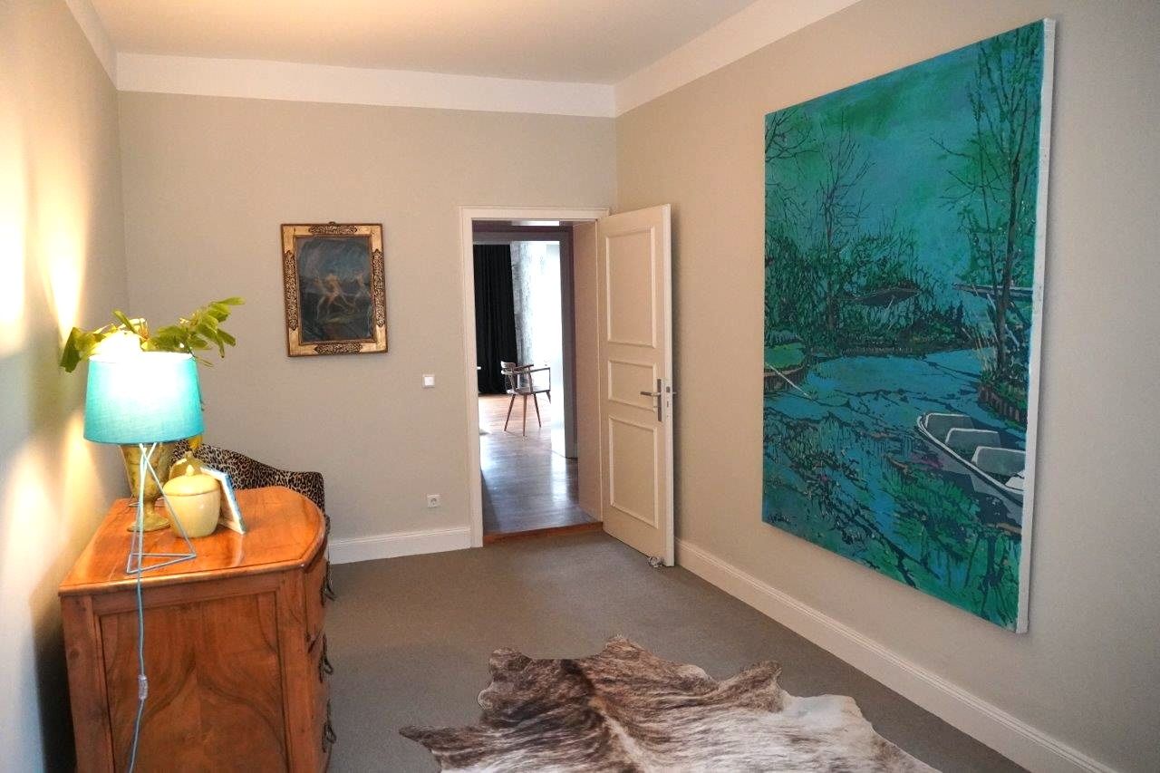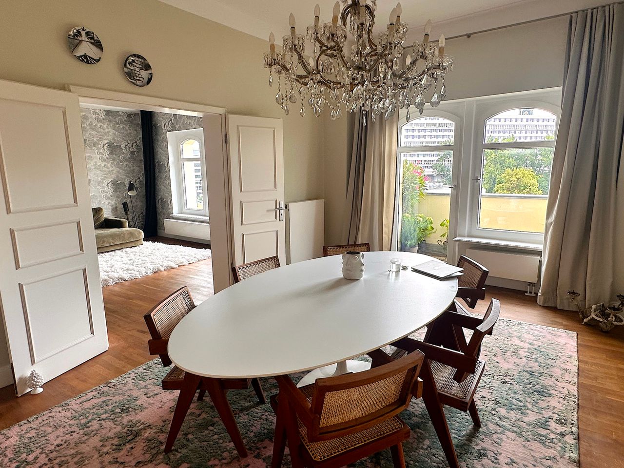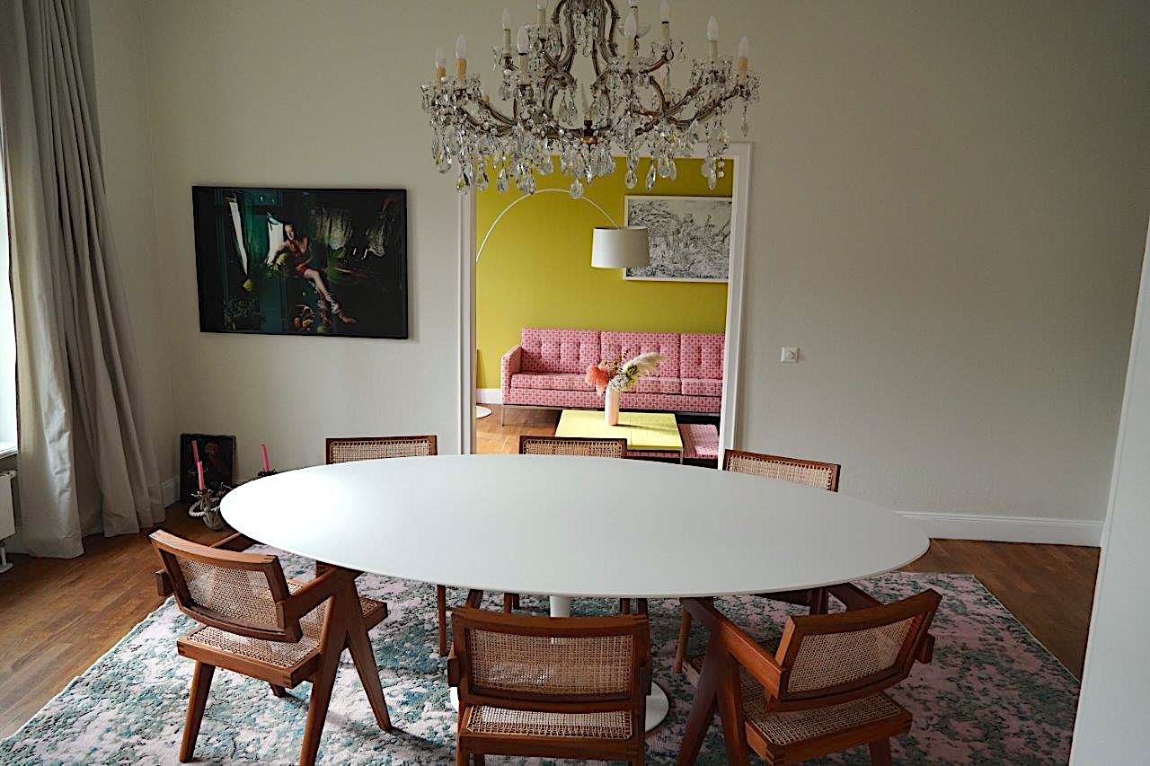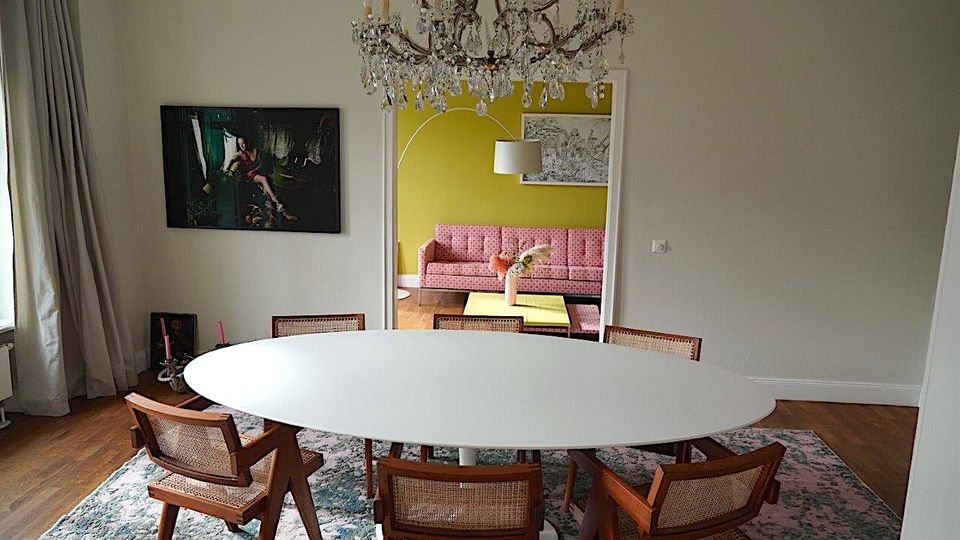 Mitten in Mitte! Die lichtdurchflutete und minimalistische Wohnung befindet sich im 4. Obergeschoss eines klassischen Berliner Altbaus ohne Aufzug. Die Wohnung bietet eine eklektische Einrichtung mit Design-Möbeln von beispielsweise Florence Knoll, Saarinen und Fornasetti. Die Räume der Wohnung sind nach Süden, Westen und Norden ausgerichtet. Das Haus ist Teil eines Industrie-Ensemble mit einer sehr schönen Hinterhoflandschaft. Von den Zimmern der Wohnung hat man einen ungewöhnlichen und sehr urbanen Blick zur Südseite auf die Großstadt. Parkmöglichkeiten sind auf der Straße vorhanden.