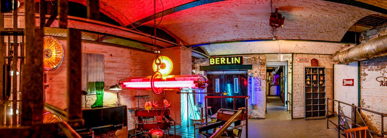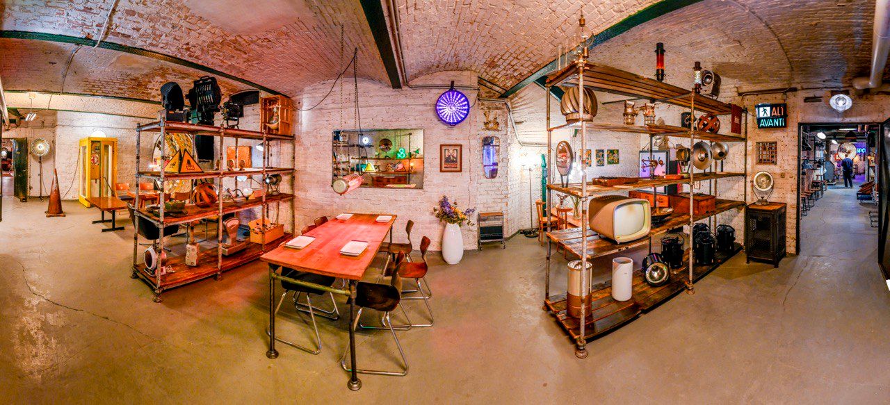 Ergänzt wird die Location durch Holz-, Metall- und Elektrowerkstätten, ein großes Inventar an vintage Lampen und Scheinwerfern sowie eine Vielzahl außergewöhnlicher Objekte aus dem letzten Jahrhundert.