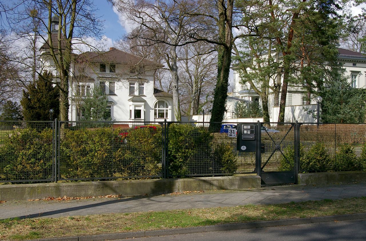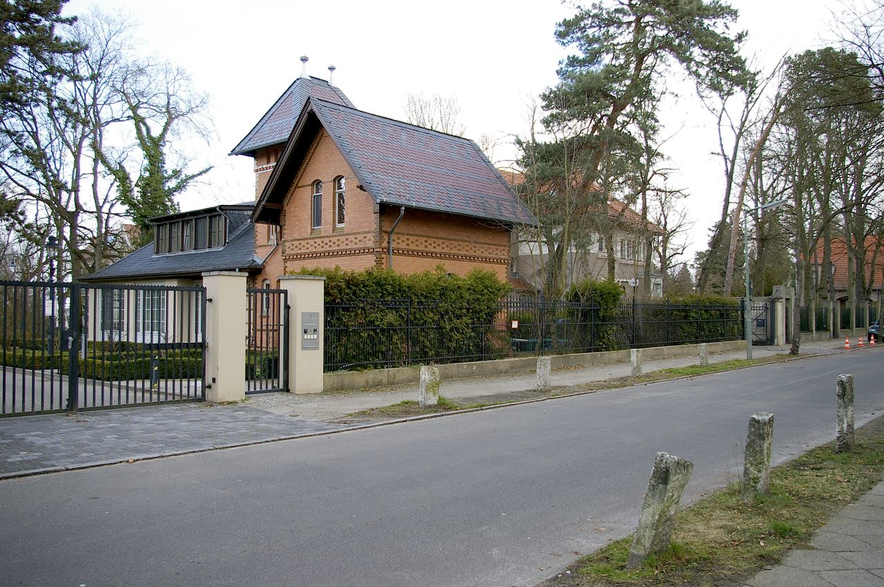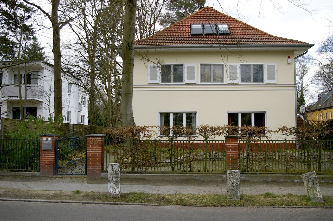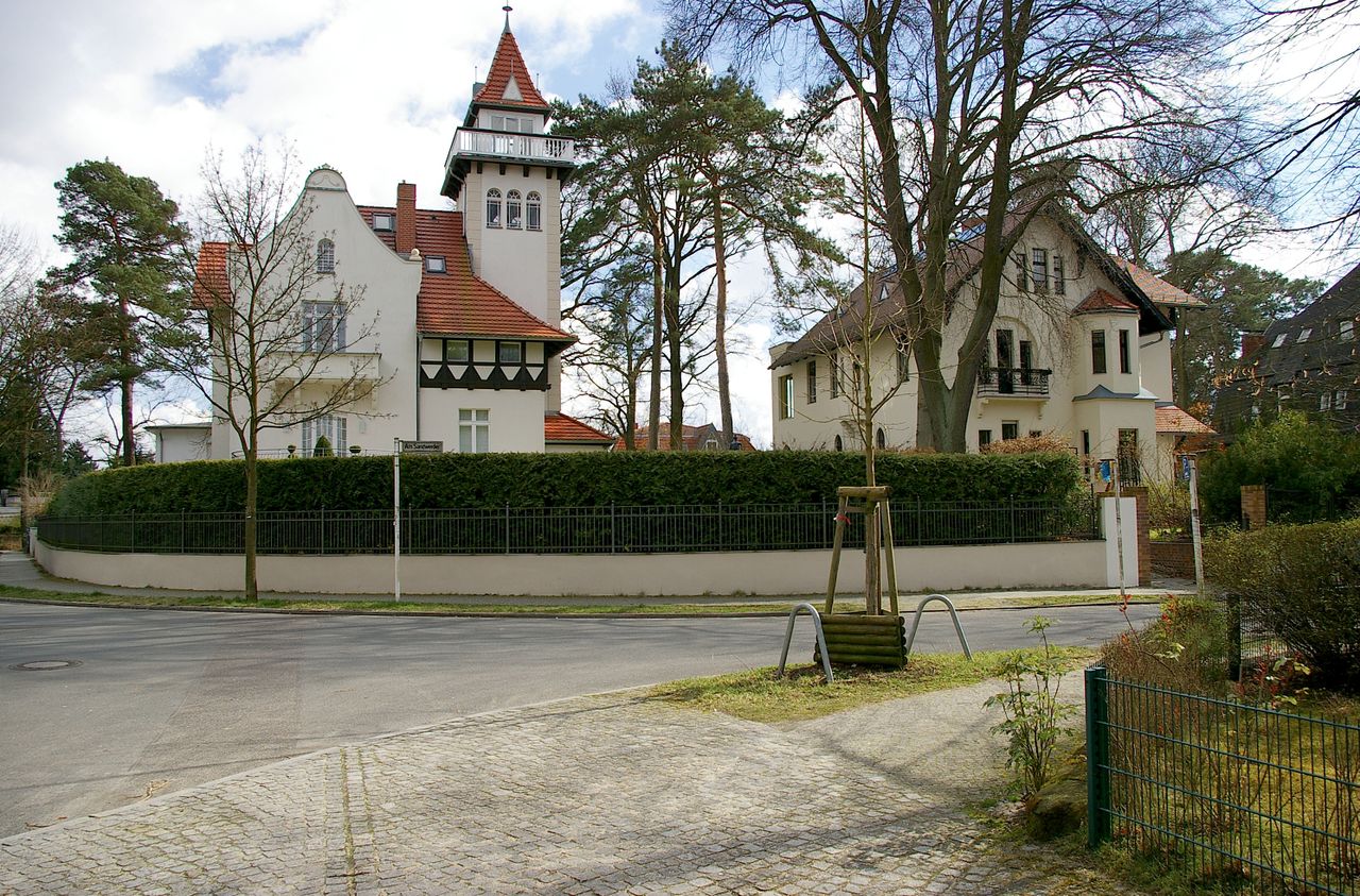 Repräsentative Straße im Berliner Stadtteil Wannsee mit teilweise ausladenen Villen, ausgehend vom Bahnhof Wannsee, alter Baumbestand. Besonders interessant ist die idyllisch gelegene Hausnummer 1.