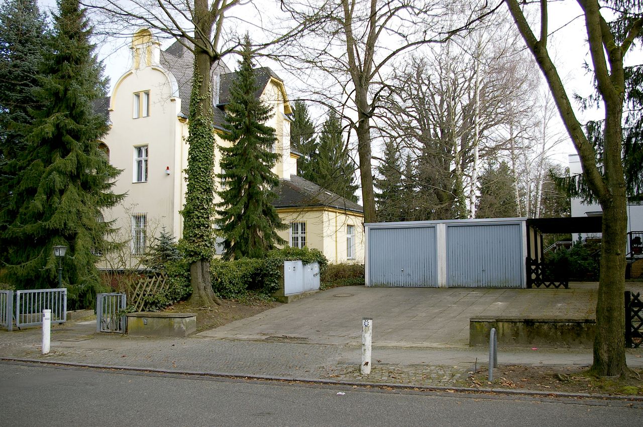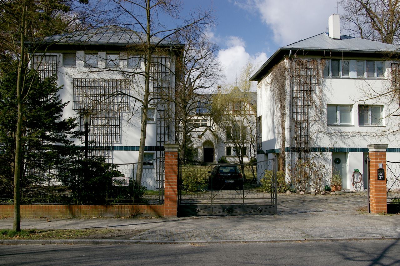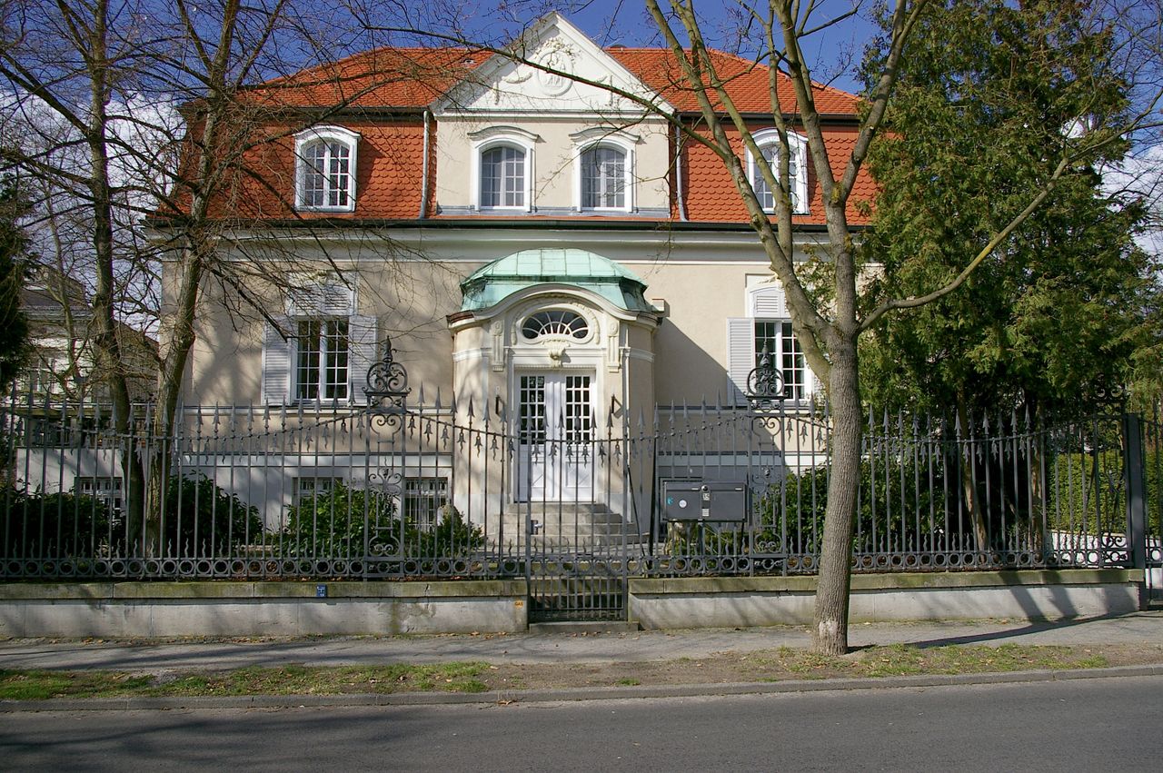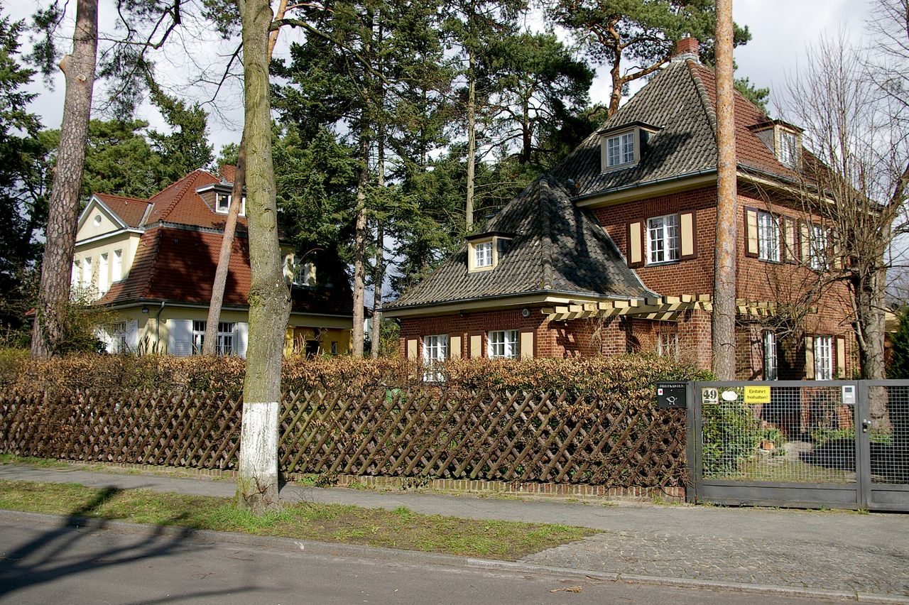 Repräsentative Straße im Berliner Stadtteil Wannsee mit teilweise ausladenen Villen, ausgehend vom Bahnhof Wannsee, alter Baumbestand. Besonders interessant ist die idyllisch gelegene Hausnummer 1.