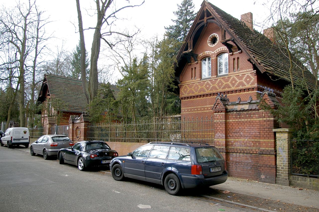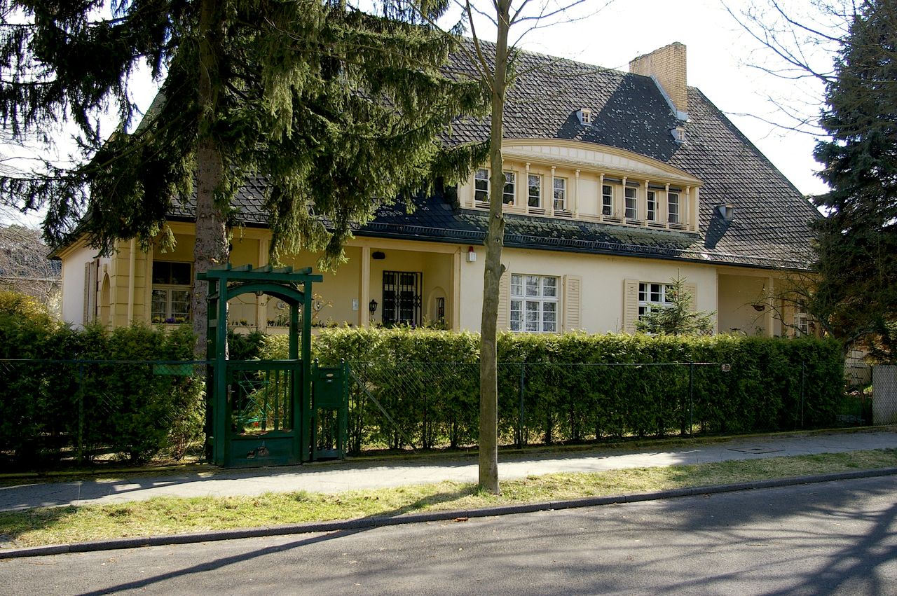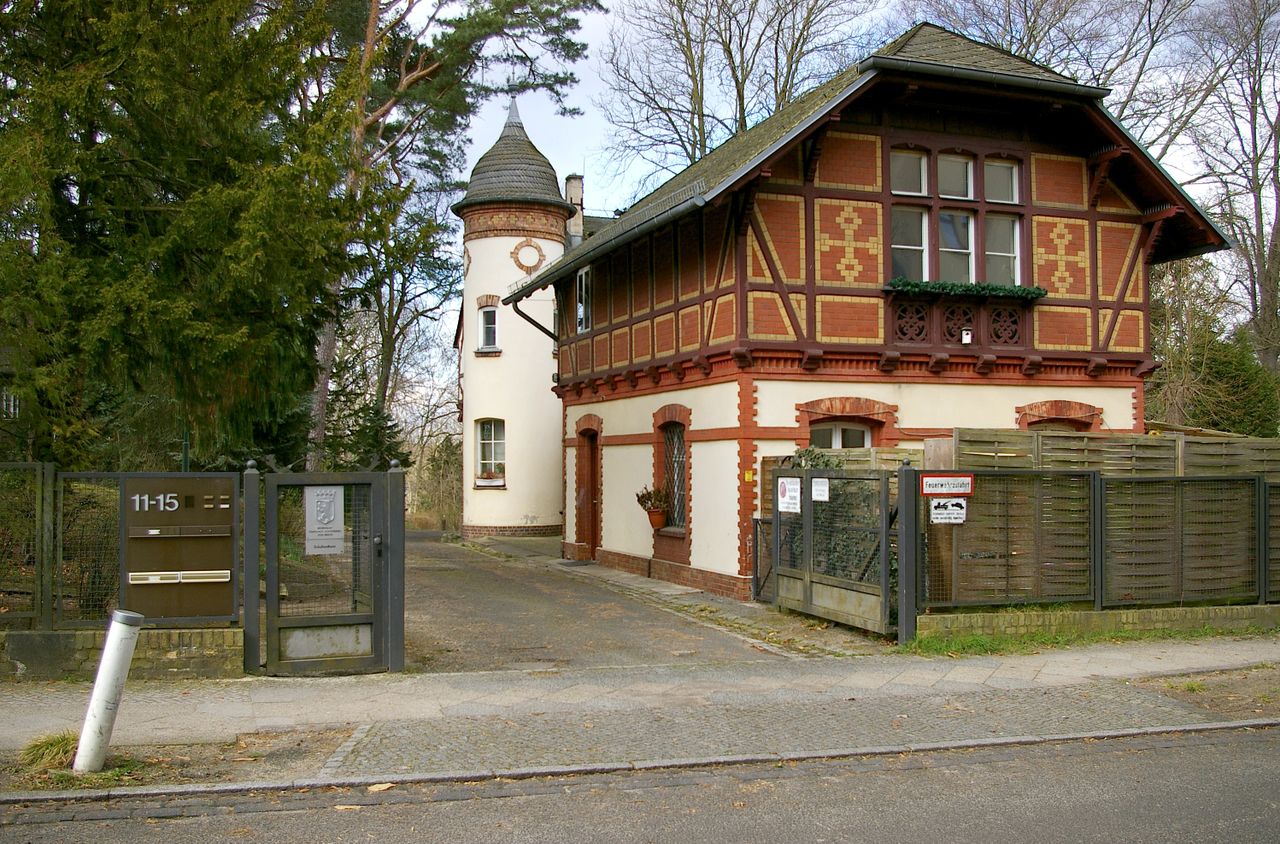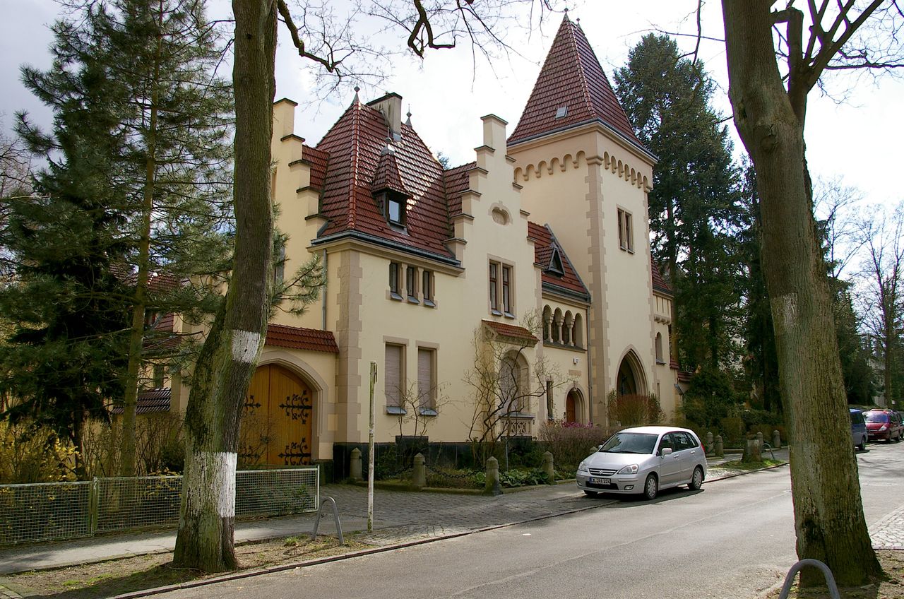 Repräsentative Straße im Berliner Stadtteil Wannsee mit teilweise ausladenen Villen, ausgehend vom Bahnhof Wannsee, alter Baumbestand. Besonders interessant ist die idyllisch gelegene Hausnummer 1.