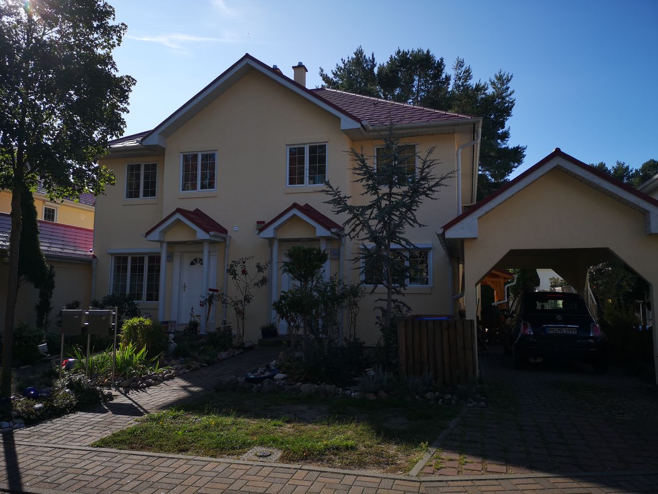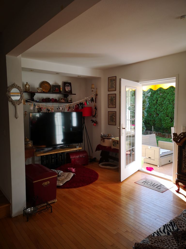 Von außen sieht es aus wie ein Doppelhaus, aber innen ist es ein Einzelhaus - ca. 160 m◊-180 m◊ Wohnzimmer, Eßzimmer, Küche, 2 Kinderzimmer, Gästezimmer, Keller, Sauna, Garten, 1 Garage, 1 Carport usw.