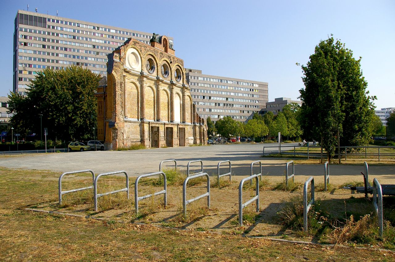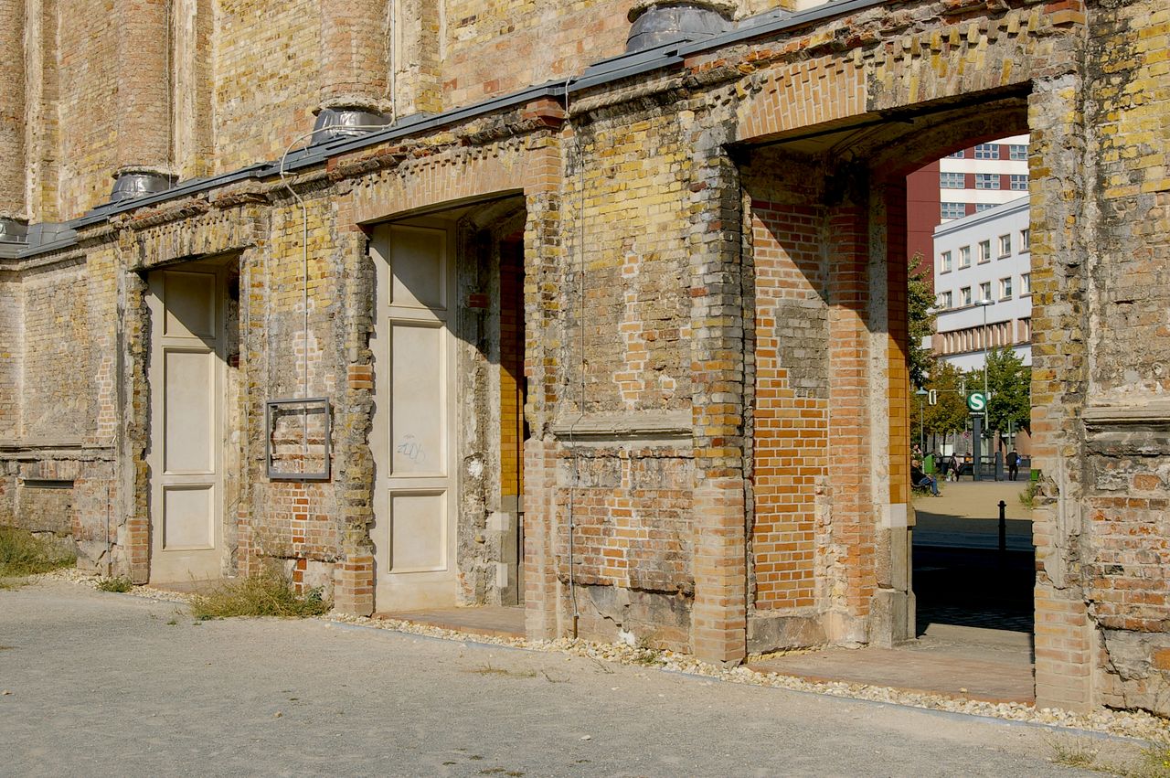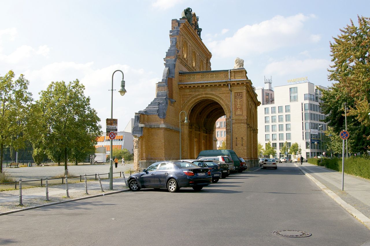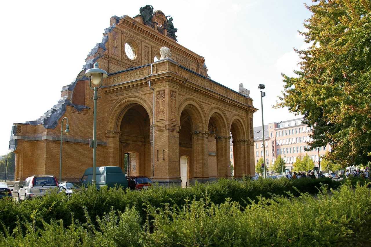 Trotz massiver Proteste aus der Bevölkerung ließ der Senat das Gebäude 1960 sprengen, nur das Portalsfragment blieb stehen. Ganz oben sieht man noch heute die Allegorien für den Tag und die Nacht, dazwischen Loch, in dem einst eine große elektrische Uhr hing - Symbole dafür, dass im Anhalter Bahnhof immer Betrieb war.