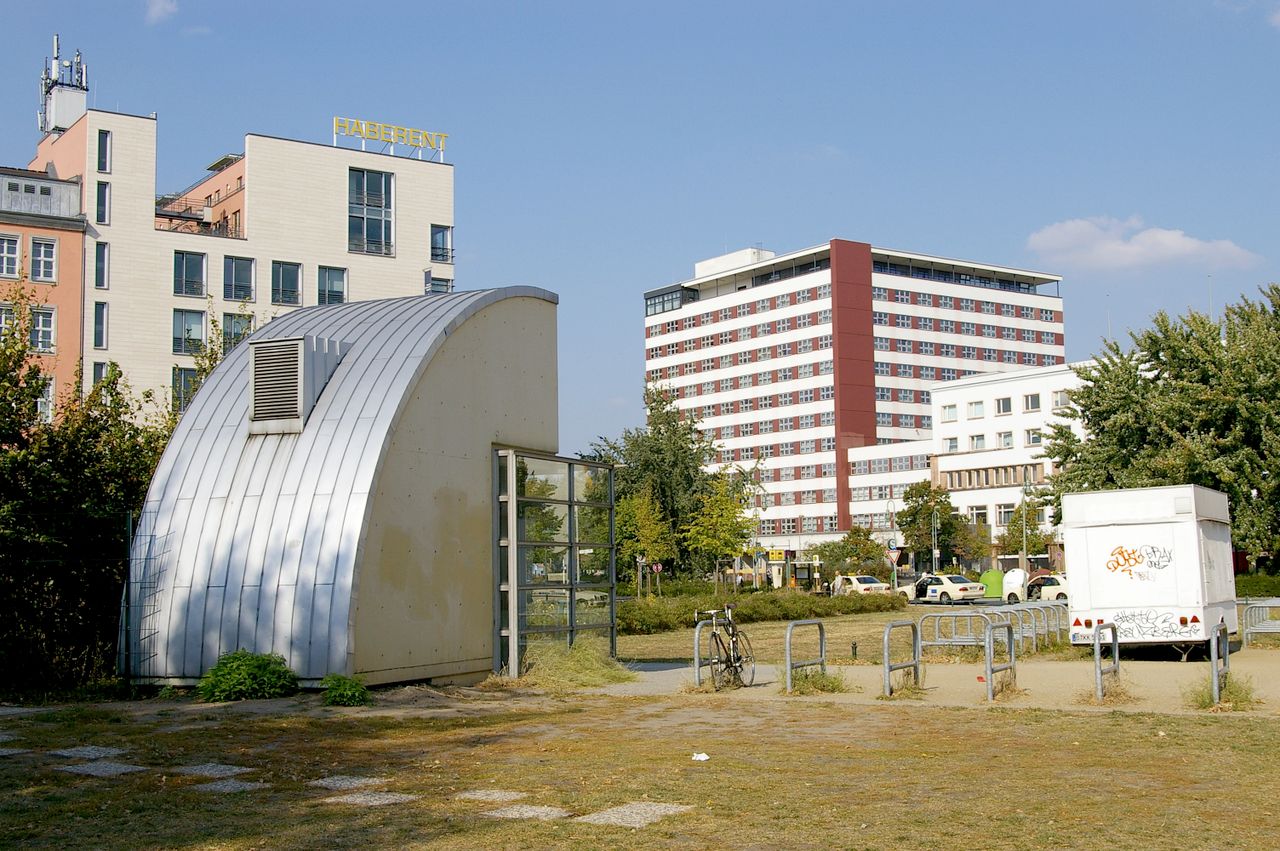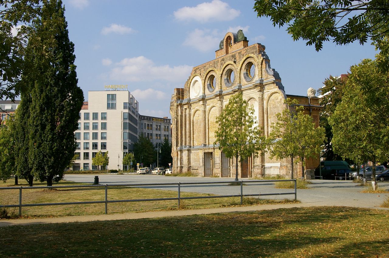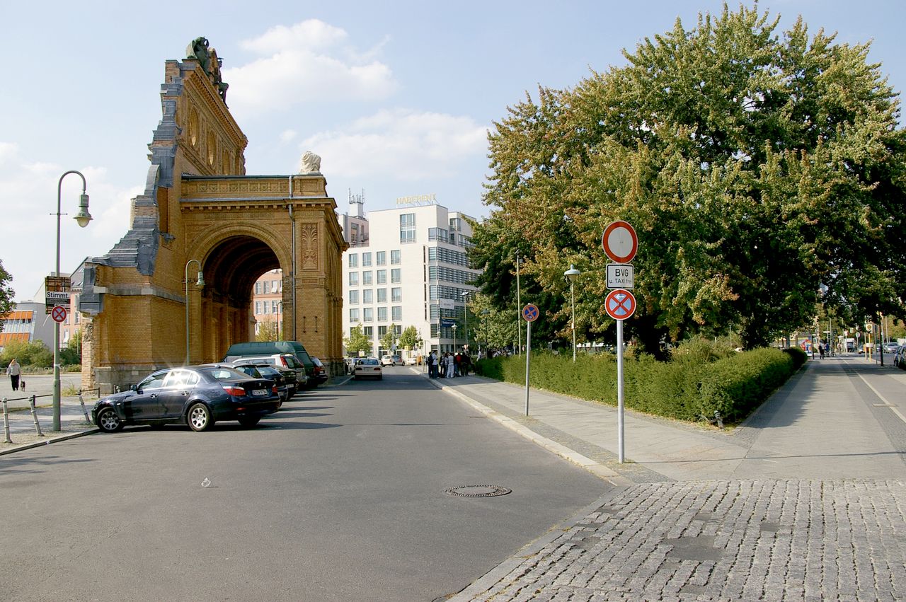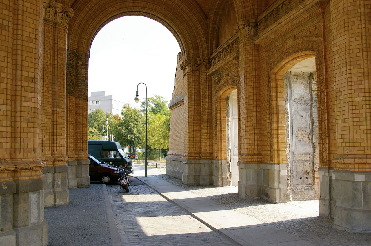 Trotz massiver Proteste aus der Bevölkerung ließ der Senat das Gebäude 1960 sprengen, nur das Portalsfragment blieb stehen. Ganz oben sieht man noch heute die Allegorien für den Tag und die Nacht, dazwischen Loch, in dem einst eine große elektrische Uhr hing - Symbole dafür, dass im Anhalter Bahnhof immer Betrieb war.