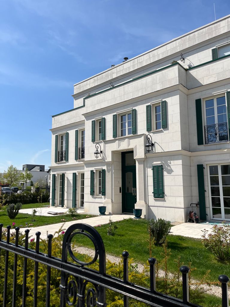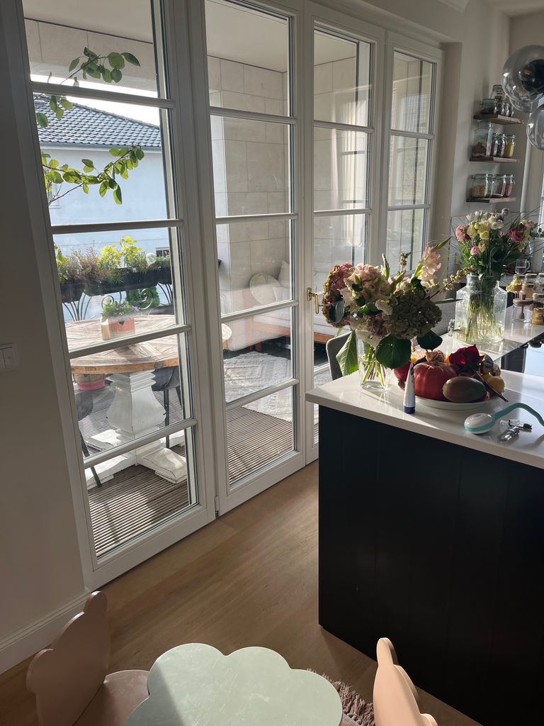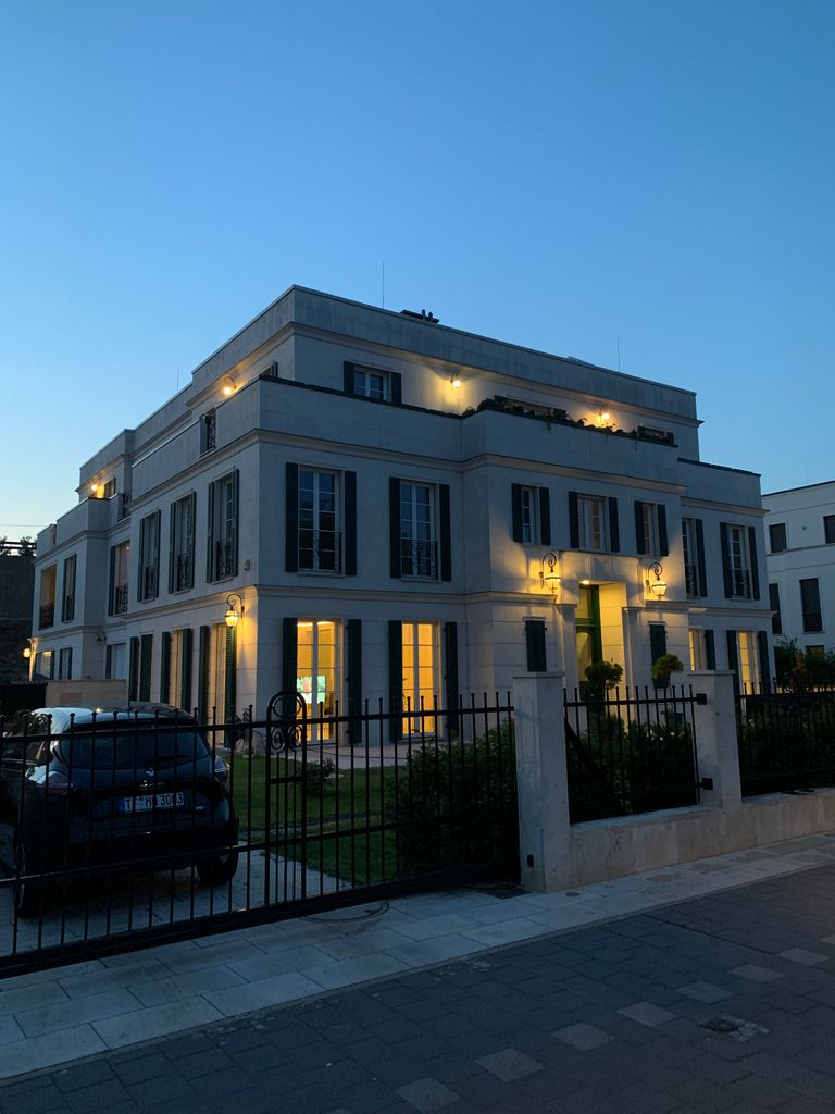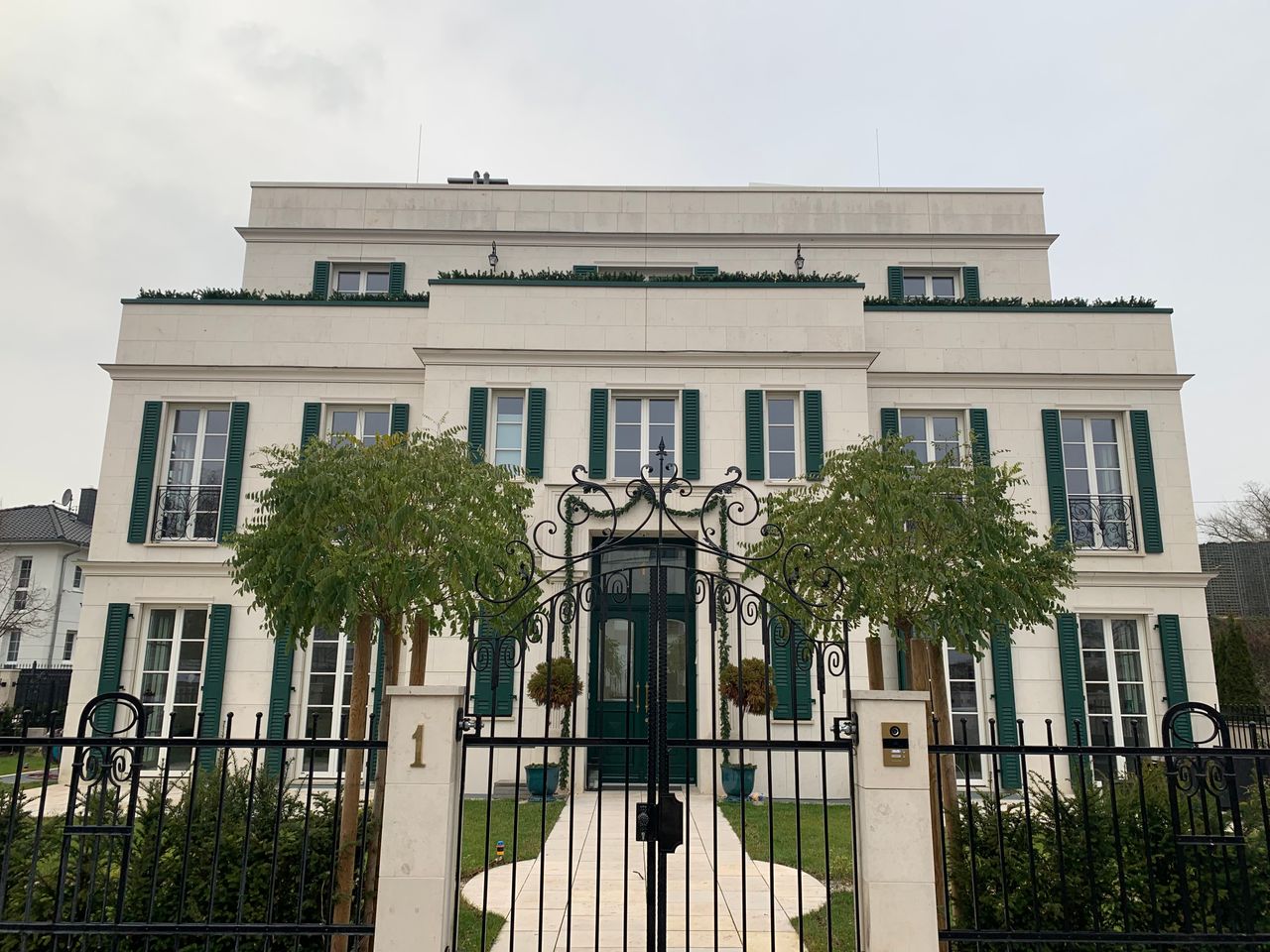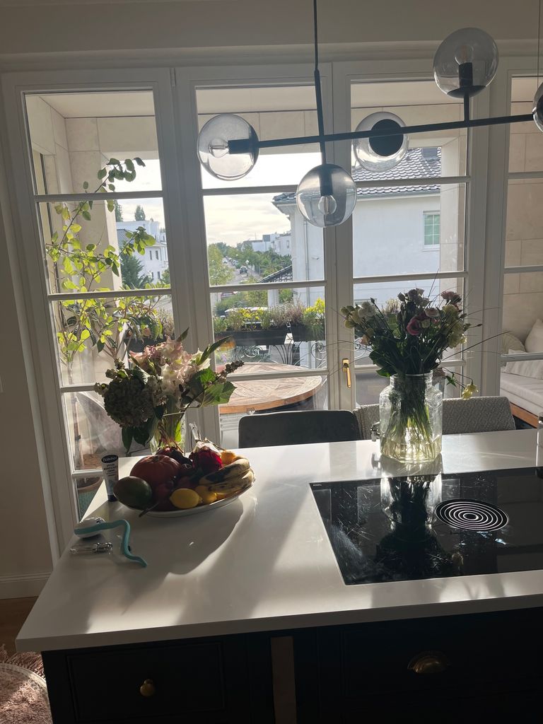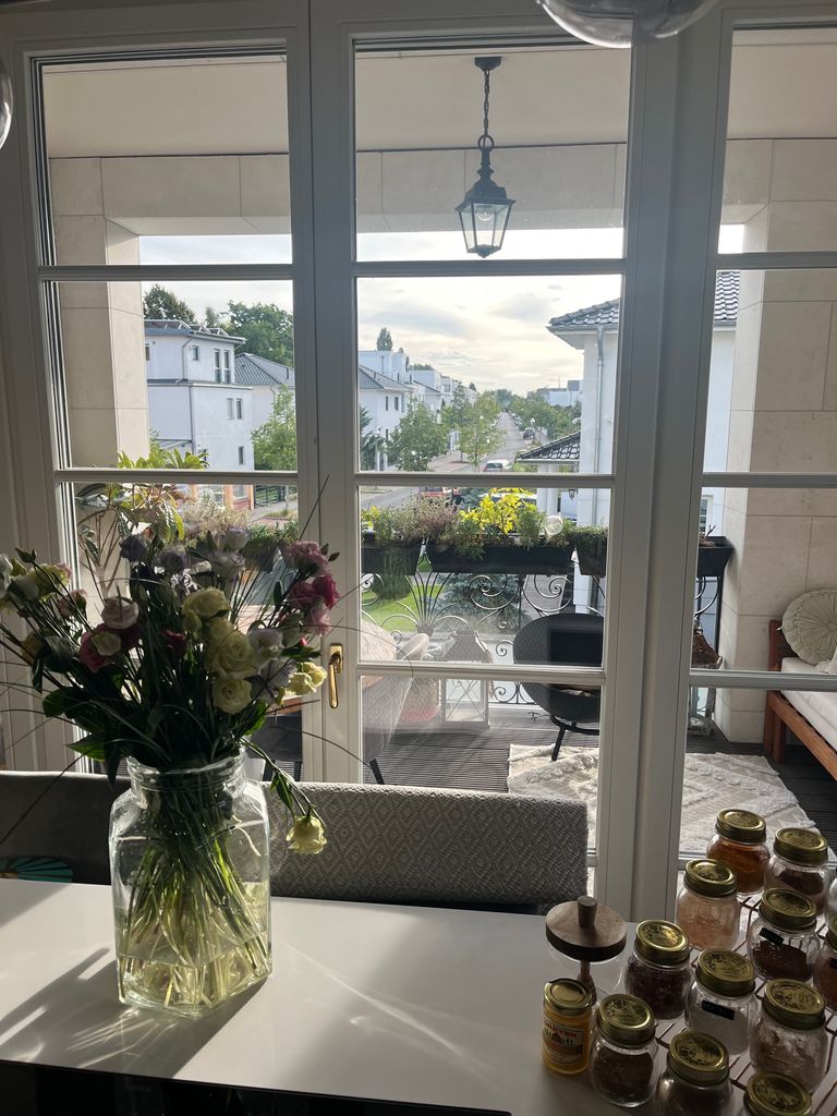 One of the most beautiful Villas in Berlin. Looks a bit French inspired. Lavender and roses in the garden, green shutters etc. Built 2018. Amazing apartment, nicely furnished, nice view, perfect for shooting movies etc. because of steel-glas elements and nice angels. Open Kitchen. Lots of parking space, easy to get there.