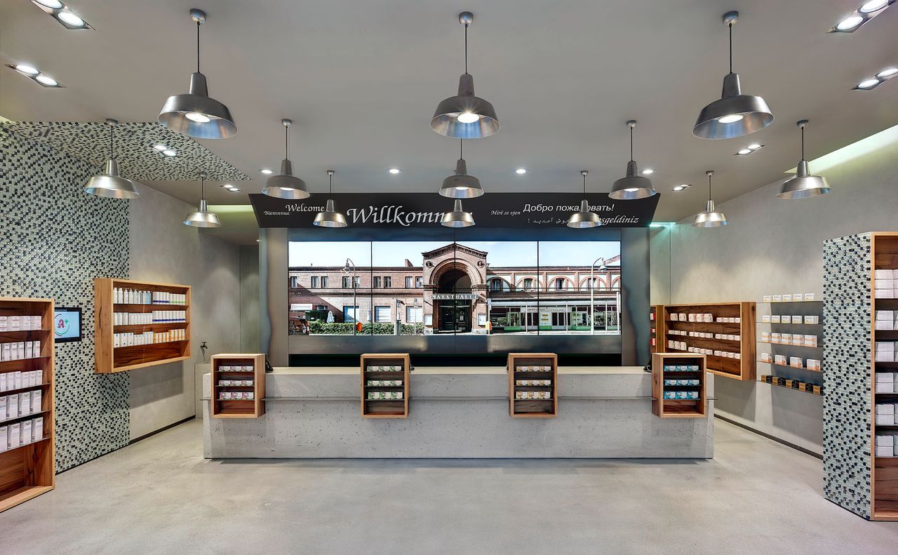 Die Apotheke strahlt eine besondere Atmosphäre aus für alle, die modernes, puristisches Design lieben. Die Apotheke wurde in Zusammenarbeit mit einem Architekten entworfen, der aus dem Möbeldesign kommt. Das macht sich in der Detailgestaltung, dem Einsatz besonderer Materialien in der Apotheke bemerkbar.
