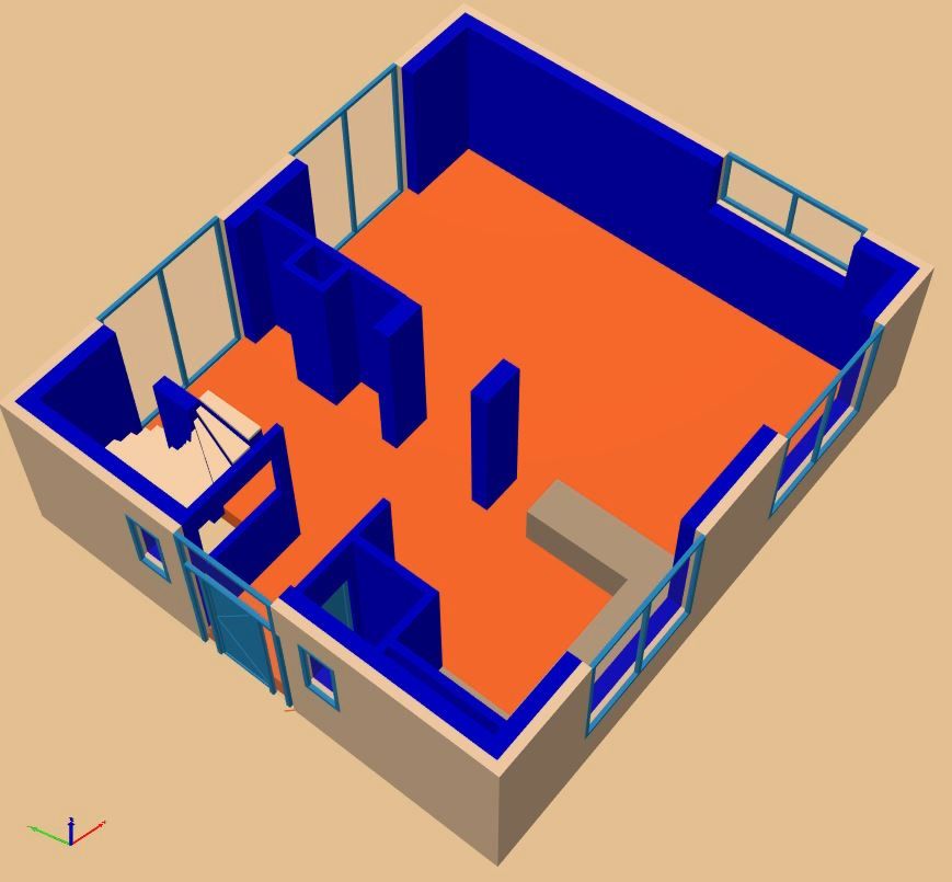 Das Haus zeichnet sich durch großflächige Erdgeschosszonen aus. Die verschiedenen Bereiche, Kochen, Essen und Wohnen gehen fließend und ohne Trennungen ineinander über. Ebenfalls sind sehr gut Szenen zum angelegten Garten und der Eingangssituation darstellbar.