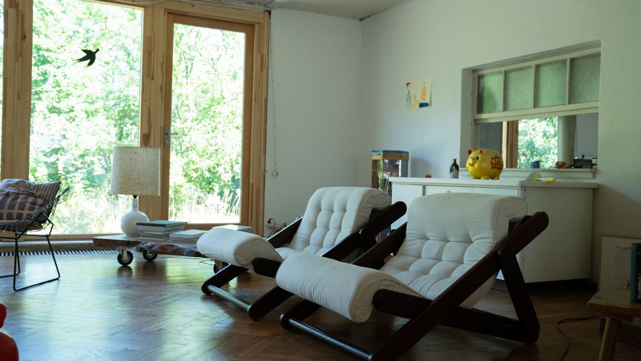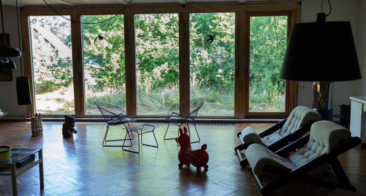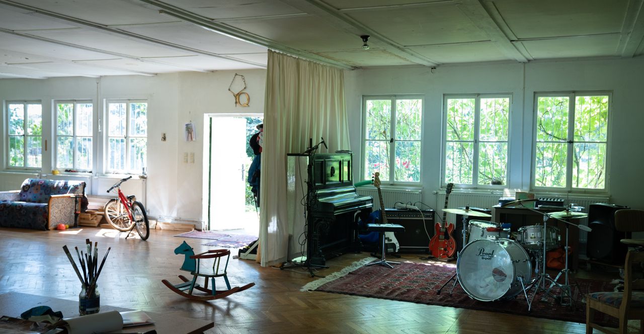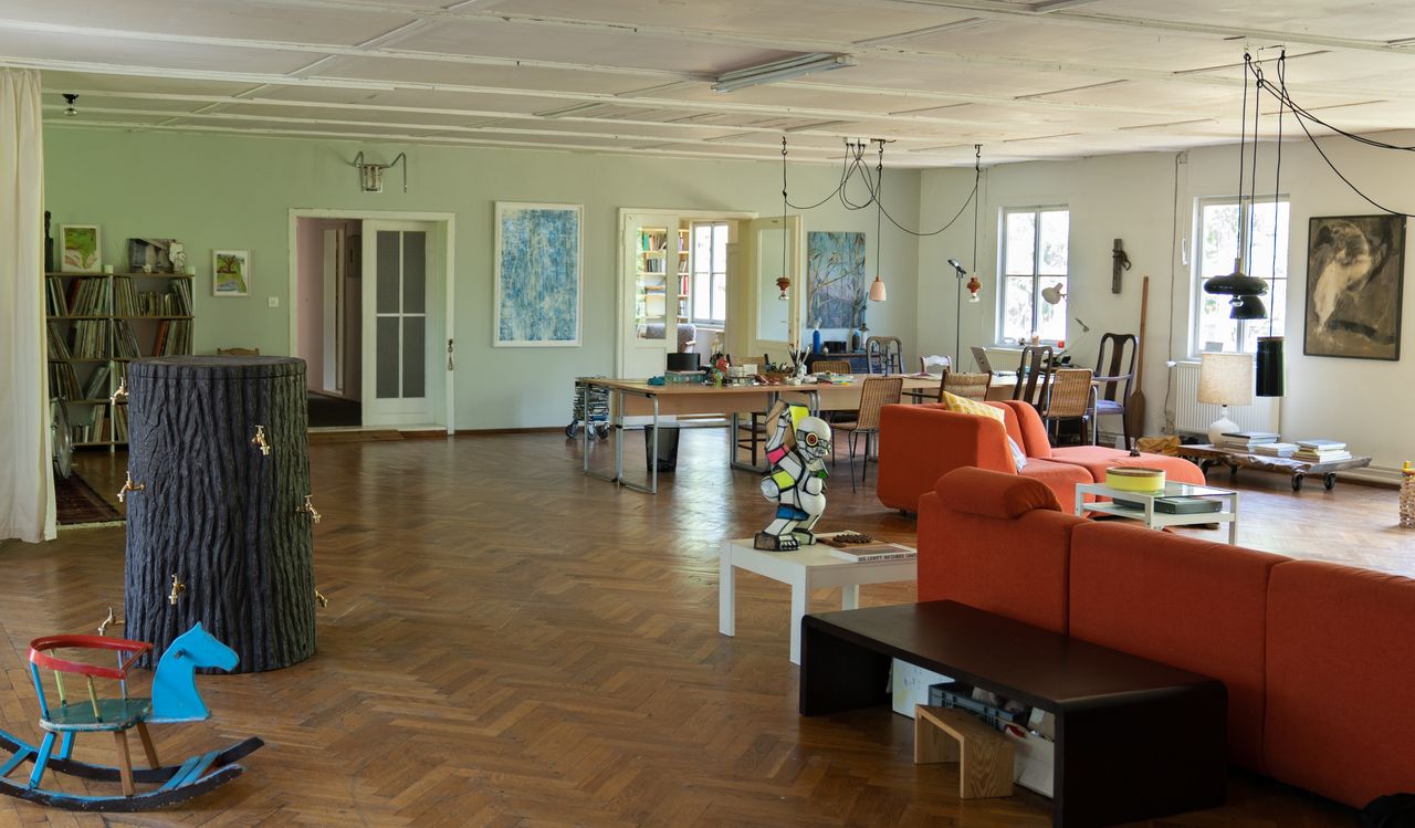 1 hour 15 minutes away from Berlin direction Frankfurt Oder, this is an old LPG house that was transformed by an artist and feels like a loft in the country side.