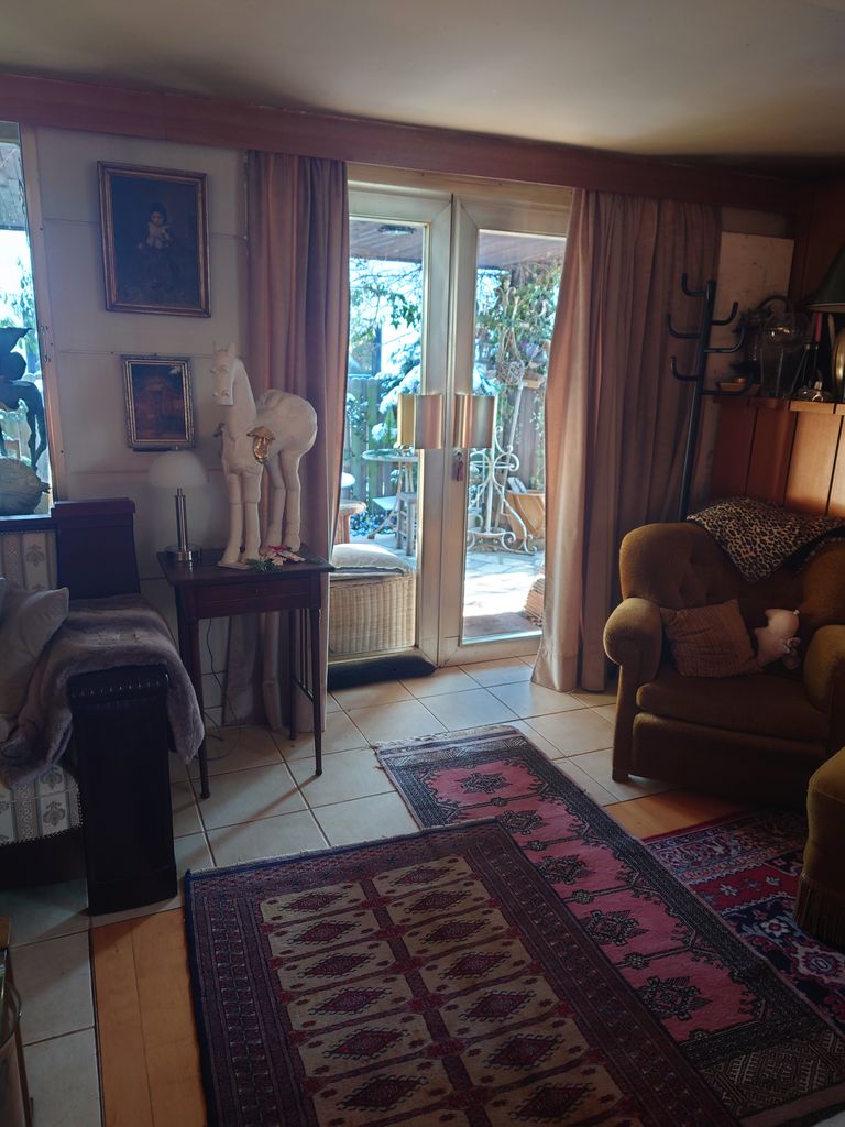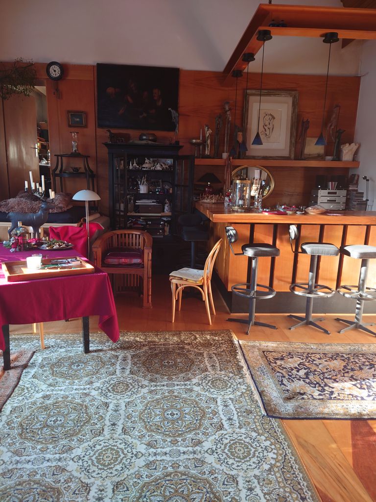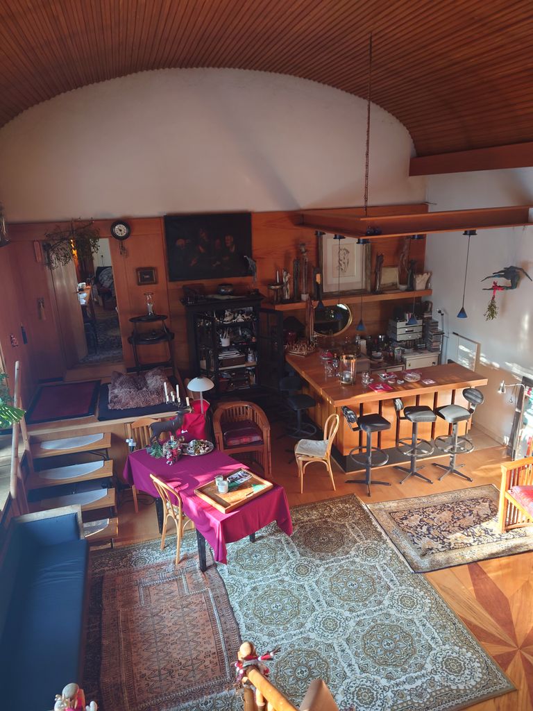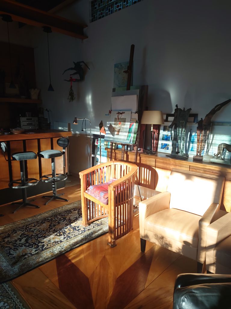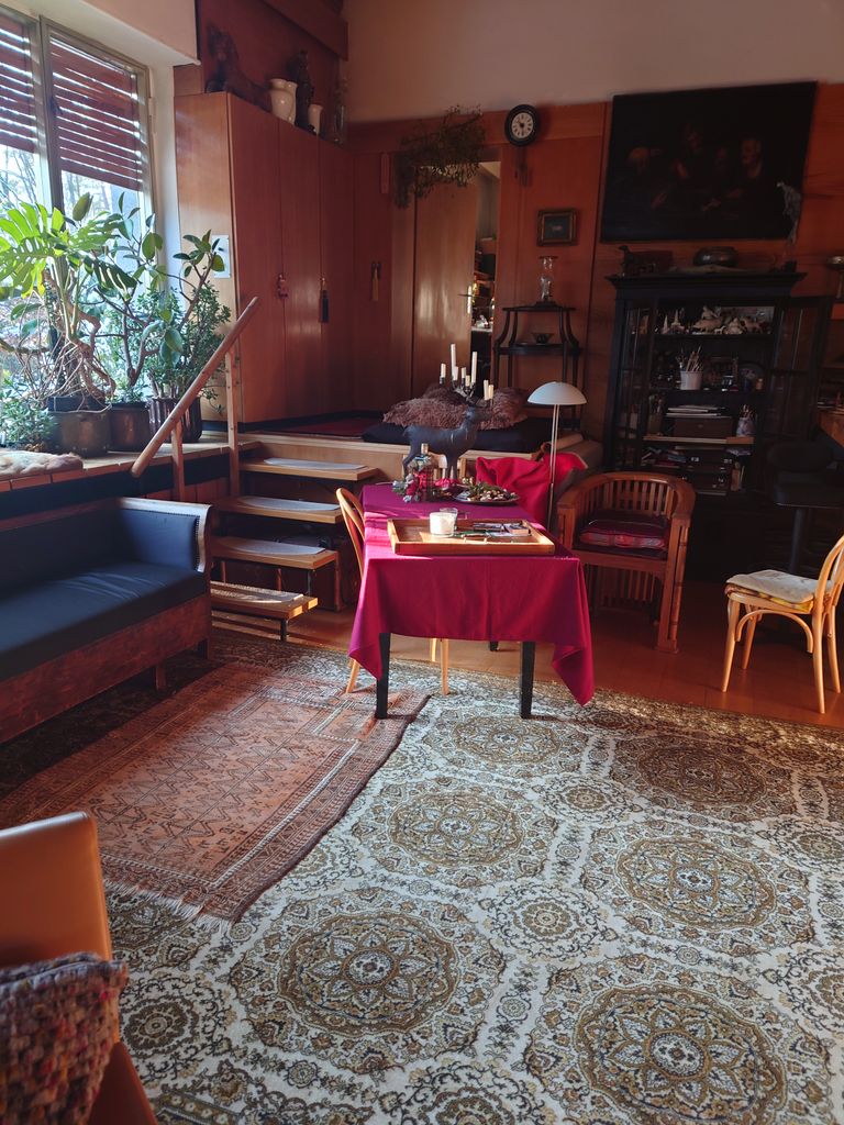 Biete meinen sehr schönen Atelier Raum, universal nutzbar. Offener Kamin Großes Fenster Treppe Hausbar Terrasse Gartenteil