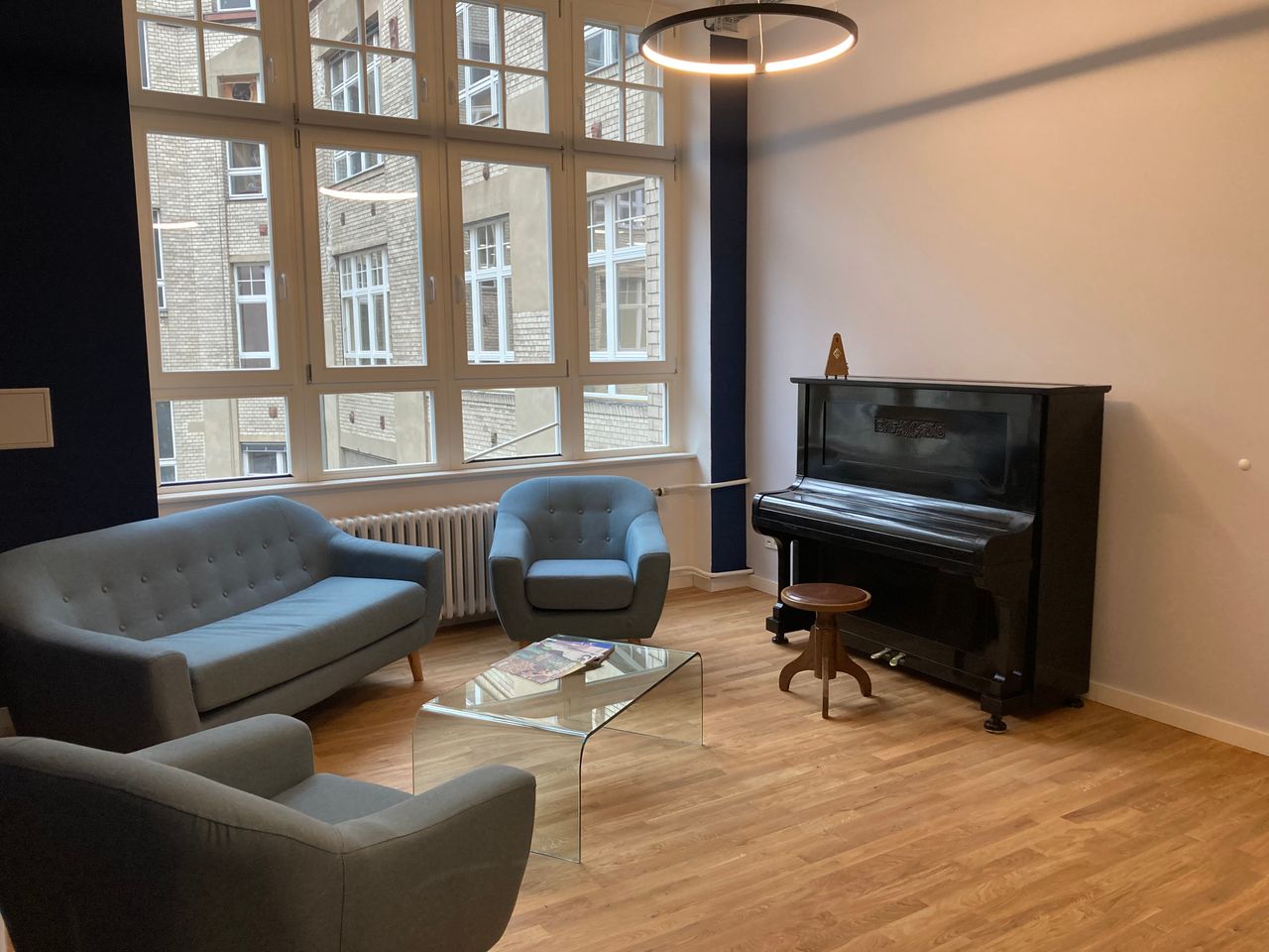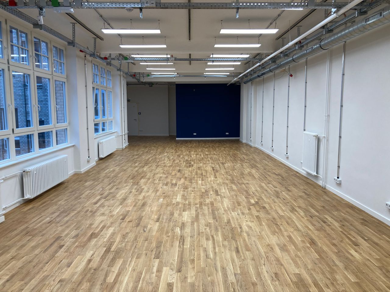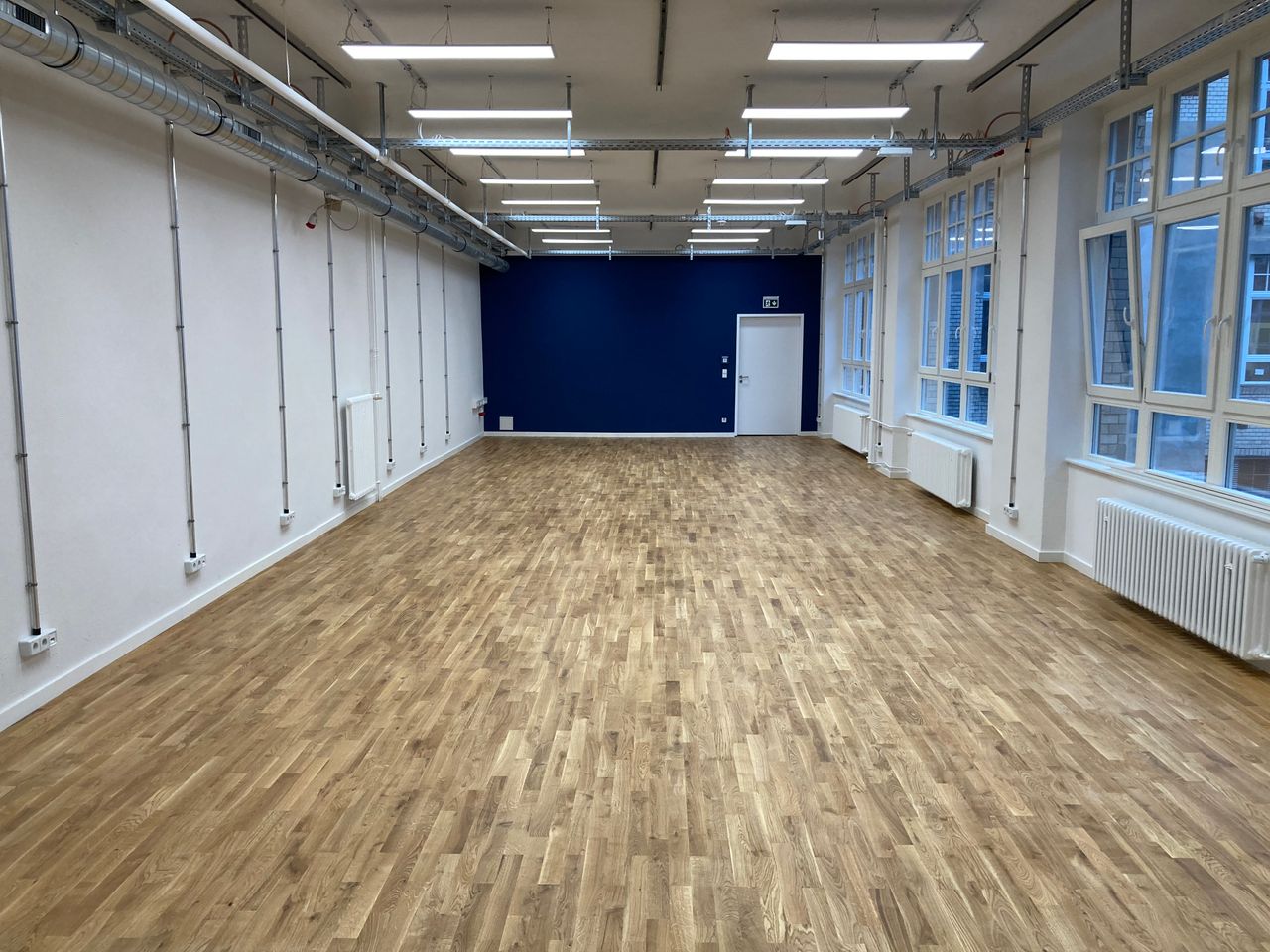 Fabriketage mit Büro, Küche, Lounge und Seminar-/ Veranstaltungsraum. Holzfußböden. Denkmalschutz Barrierearm