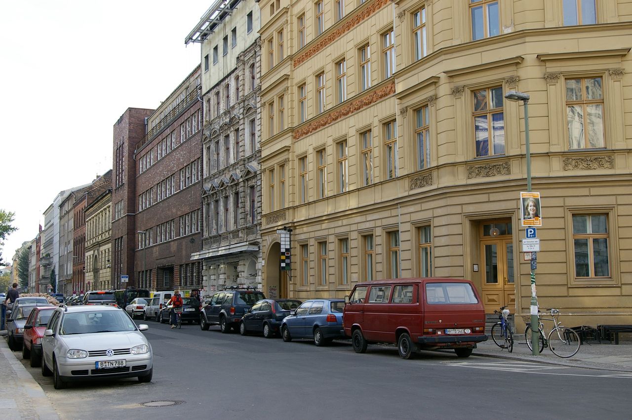 Szenestraße mit unzähligen Galerien, ältere Gebäude aus dem 18. Jahrhundert stehen neben moderner Architektur, topsanierte Häuser neben heruntergekommenen Fassaden.