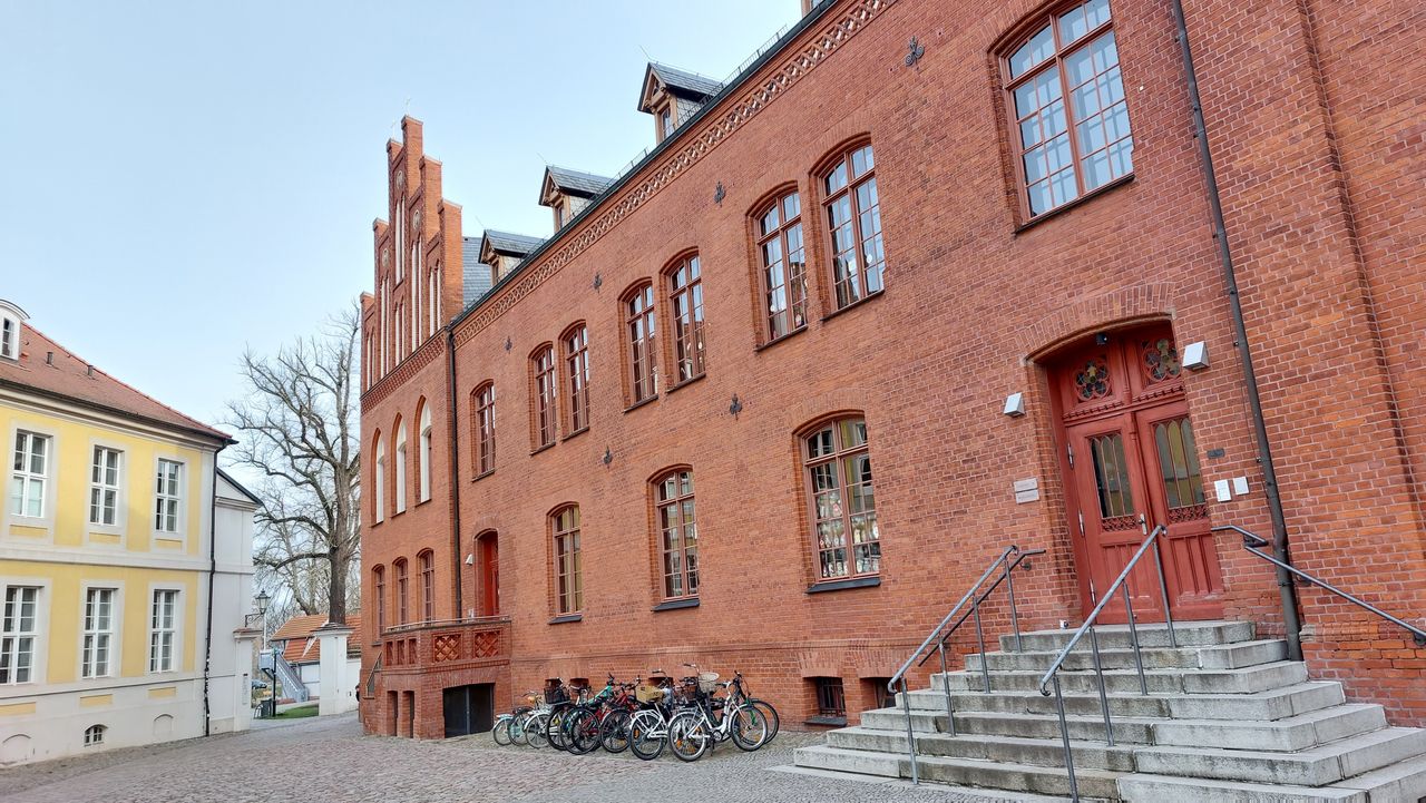 "Die Ritterakademie wurde 1705 als Schule für die Abkömmlinge des märkischen und pommerschen Adels gegründet. Auch heute noch befindet sich in dem Gebäudekomplex eine Schule. Die Aula befindet sich im Obergeschoss und diente als Fest- und Versammlungssaal, für die sie auch aktuell genutzt wird.