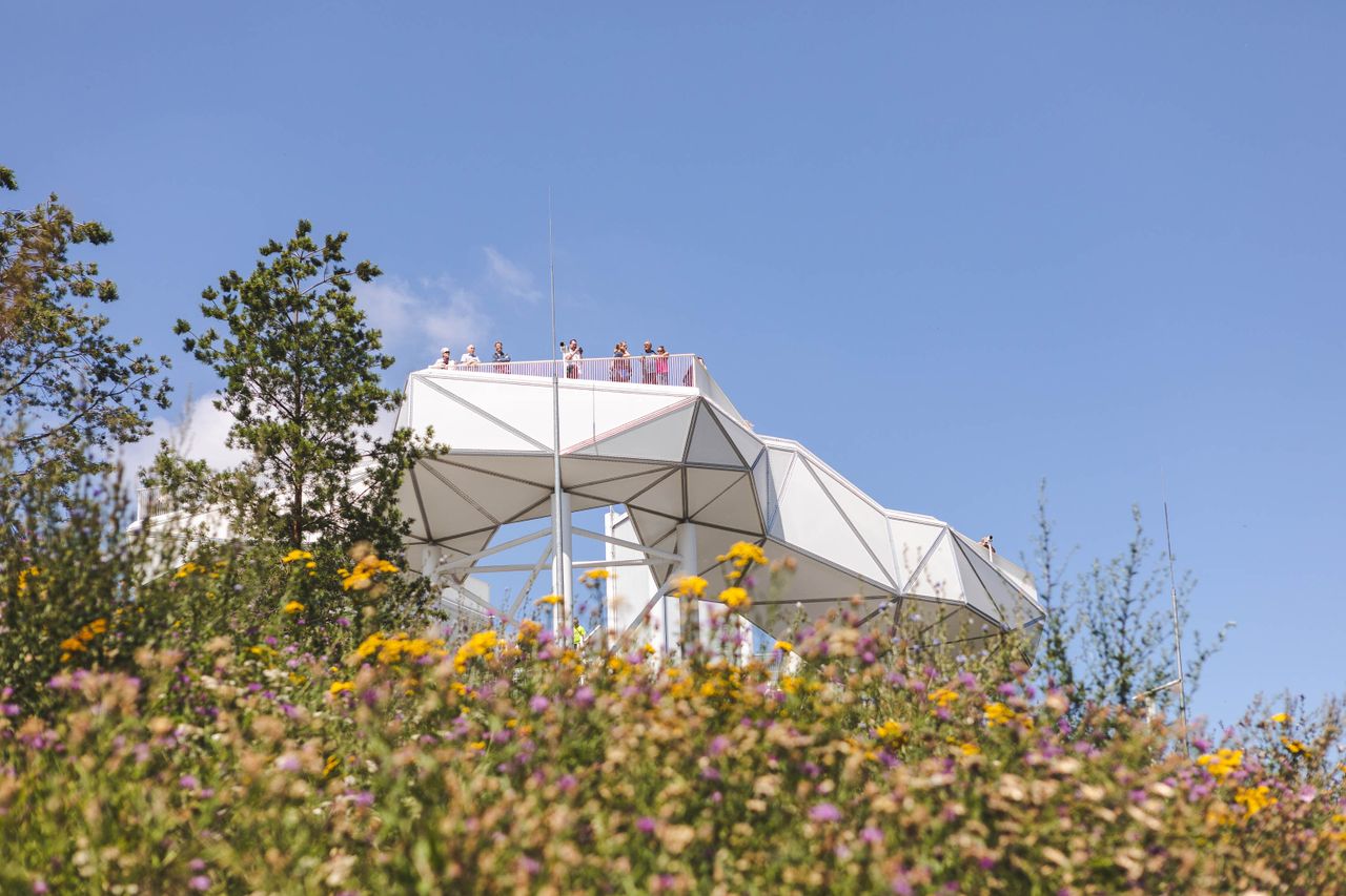 Das architektonische Herzstück des direkt neben den Gärten der Welt gelegenen Parks besteht aus ca. 170 Stahlknoten, die von schlanken Stahlstützen getragen werden. Die in einer anspruchsvollen Konstruktion unregelmäßig angeordneten Streben stehen symbolisch für das organische Wachstum von Ästen an einem Baum.