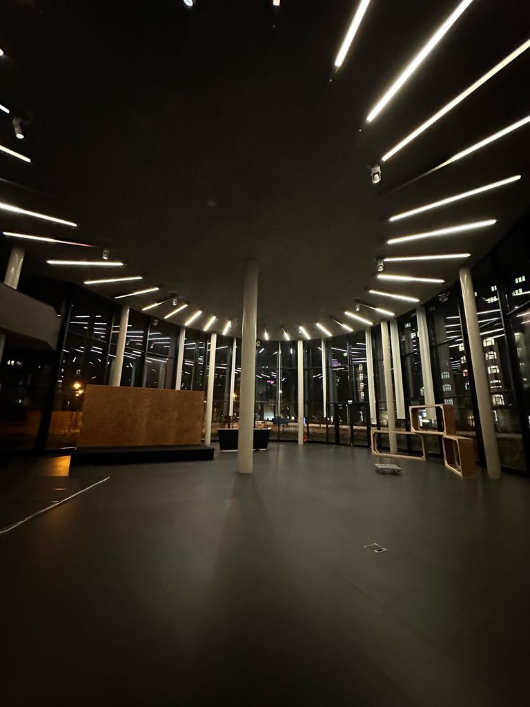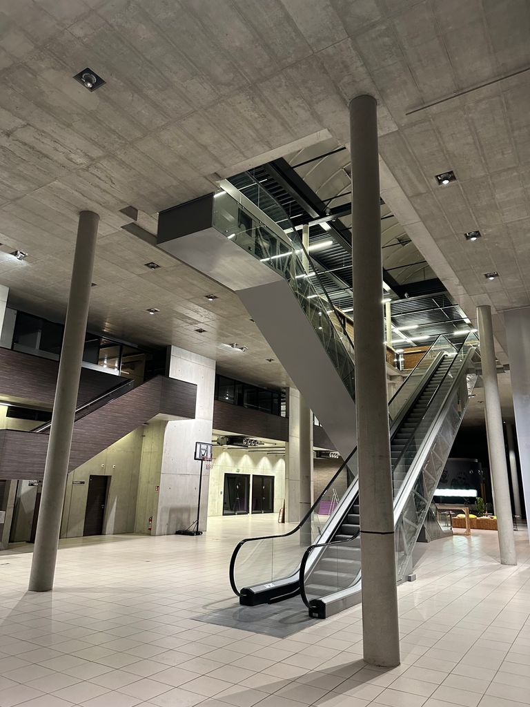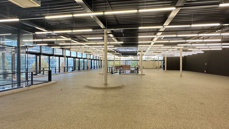 Das gesamte Gebäude, aus Beton gefertigt und mit weitläufigen Fenstern versehen, präsentiert sich in einer modernen architektonischen Ästhetik. Zahlreiche Bereiche innerhalb der Location bieten vielseitige Optionen.