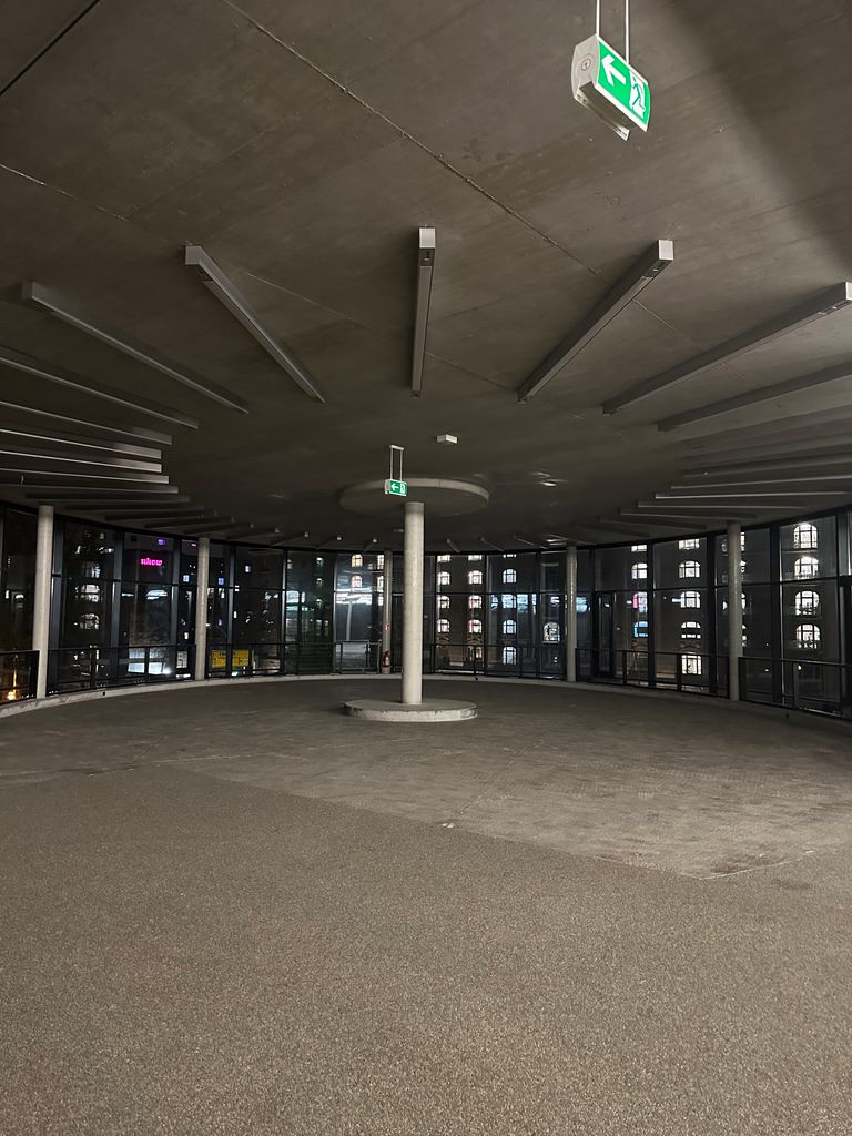 Auf einem weitläufigen Grundstück von 8000 Quadratmetern, sowohl drinnen als auch draußen, präsentiert sich das Gebäude als beeindruckende Verschmelzung von industrieller Anmut und zeitgenössischem Design. Das Erdgeschoss beherbergt eine großartige Empfangshalle und einen umgestalteten ehemaligen Autowerkstattbereich, der nun als Club fungiert. Eine Etage höher befindet sich der alte Showroom, ausgestattet mit einem Lastenaufzug, der früher Autos in die erste Etage brachte und somit den größten Veranstaltungsraum schafft. Darüber liegt das "Penthouse", eine UFO-förmige Fläche, die eine einzigartige Atmosphäre für exklusive Veranstaltungen bietet.