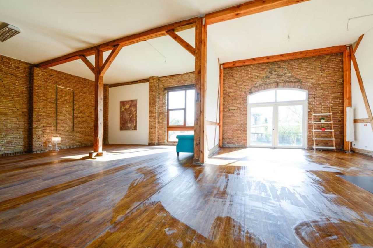 Built in 1920, this old farm has an abundance of character. As little as 30km away from Kudamm, 2500sqm of nature with old trees and enchanting corners wait to be the perfect setting for a countryside scene. Upon entering the home, on the ground floor, a new 160sqm photo/film studio with 5m high ceilings and resilient wood floor (the large double doors allow a car, trolley, pallet truck or forklift to enter) while on the first floor a 180sqm light-flooded furnished loft with Tuscan style floors can be found. The charming inner courtyard offers space for up to 20 cars or trucks making it an ideal location for larger productions. More photos available upon request!