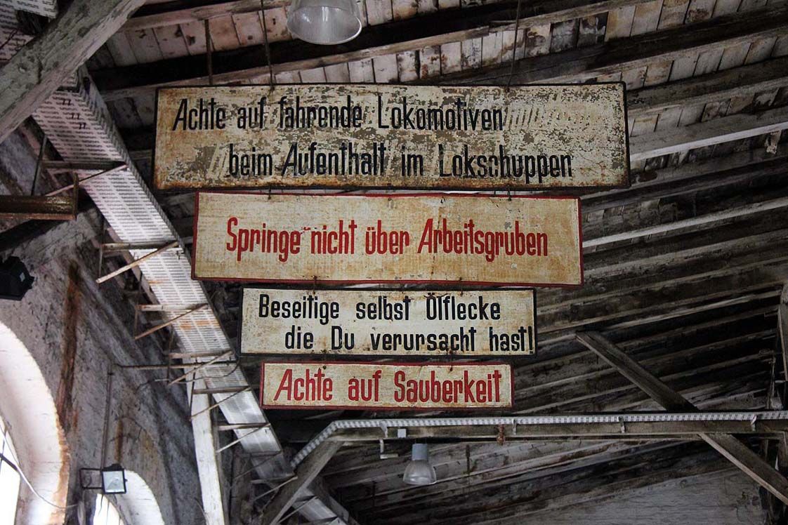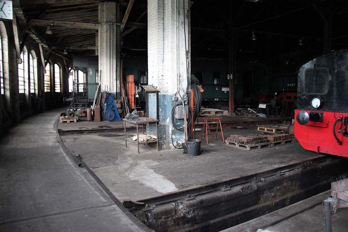 Im Lokomotivschuppen mit angrenzenden Werkstattbereichen lassen sich Werkstatt-/ Industrieszenen aus der Gründerzeit ebenso inszenieren wie Motive, die in die Jahre gekommene Industrieobjekte aus DDR-Zeiten erfordern.