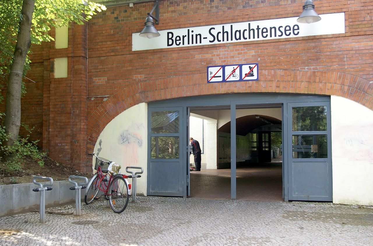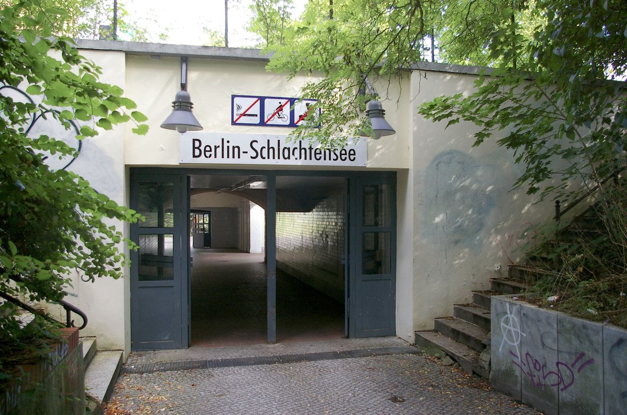 Direkt am S-Bahnhof Schlachtensee liegt der „Paul-Ernst Park“. Über den S-Bahnhof Schlachtensee sind See und Wohnviertel verkehrstechnisch gut angebunden. Während im oberen Bereich am S-Bahnhof Blumenbeete und – im Sommer stark frequentierte – Liegewiesen angelegt sind.
