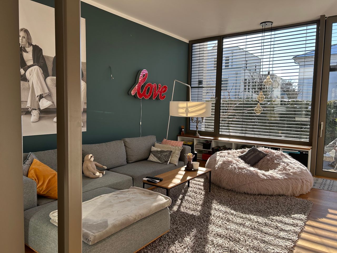 - Besonderes Merkmal: Lichtdurchflutet, freundlich und hell aufgrund der sehr hohen Decken und Bodentiefen, sehr großen Fenster