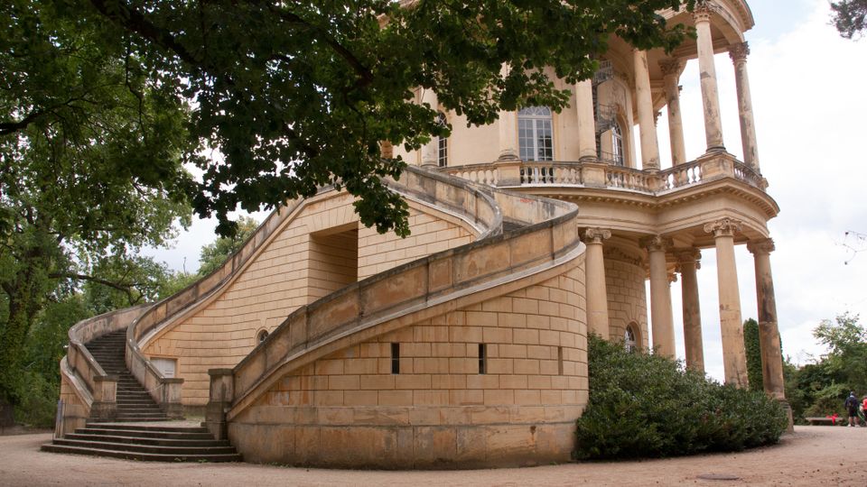 Der zweigeschossige, mit zwei Altanen versehene und von einer Kuppel bekrönte Rundbau hatte nach dem Willen Friedrichs des Großen sein Vorbild in einem Rekonstruktionsversuch des Kaiserpalastes Kaiser Neros in Rom.