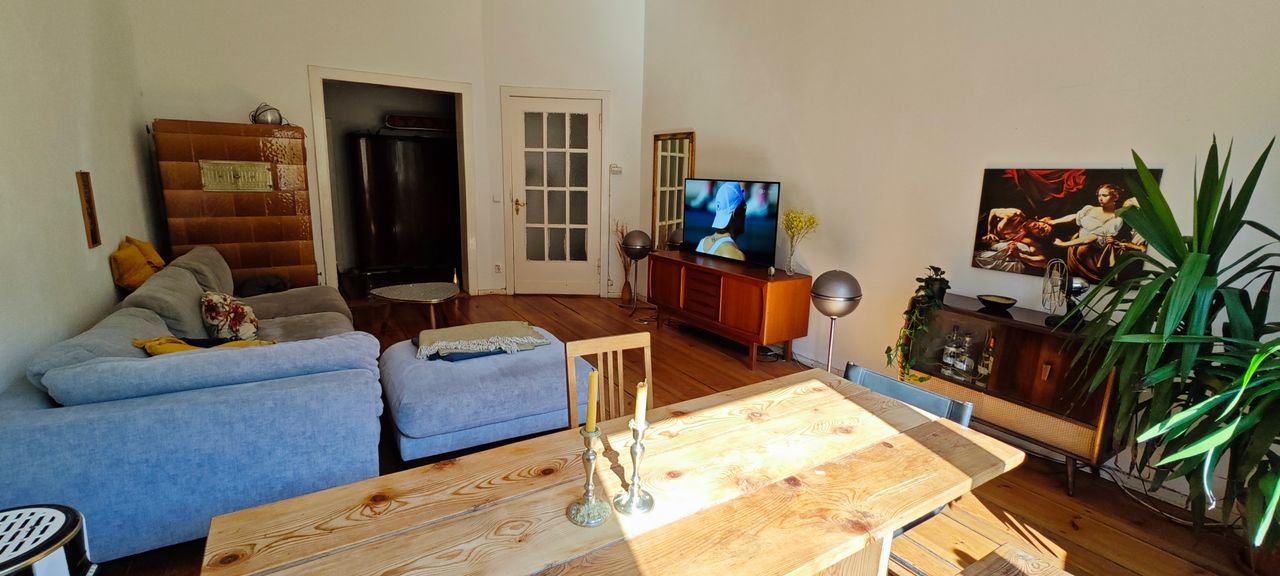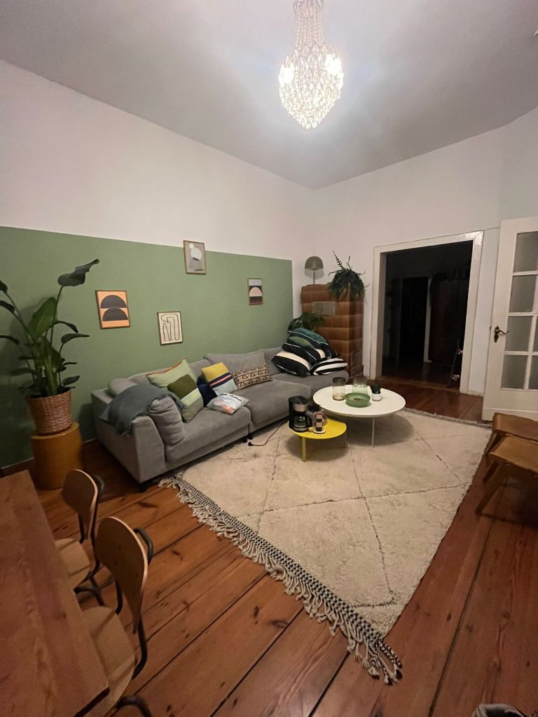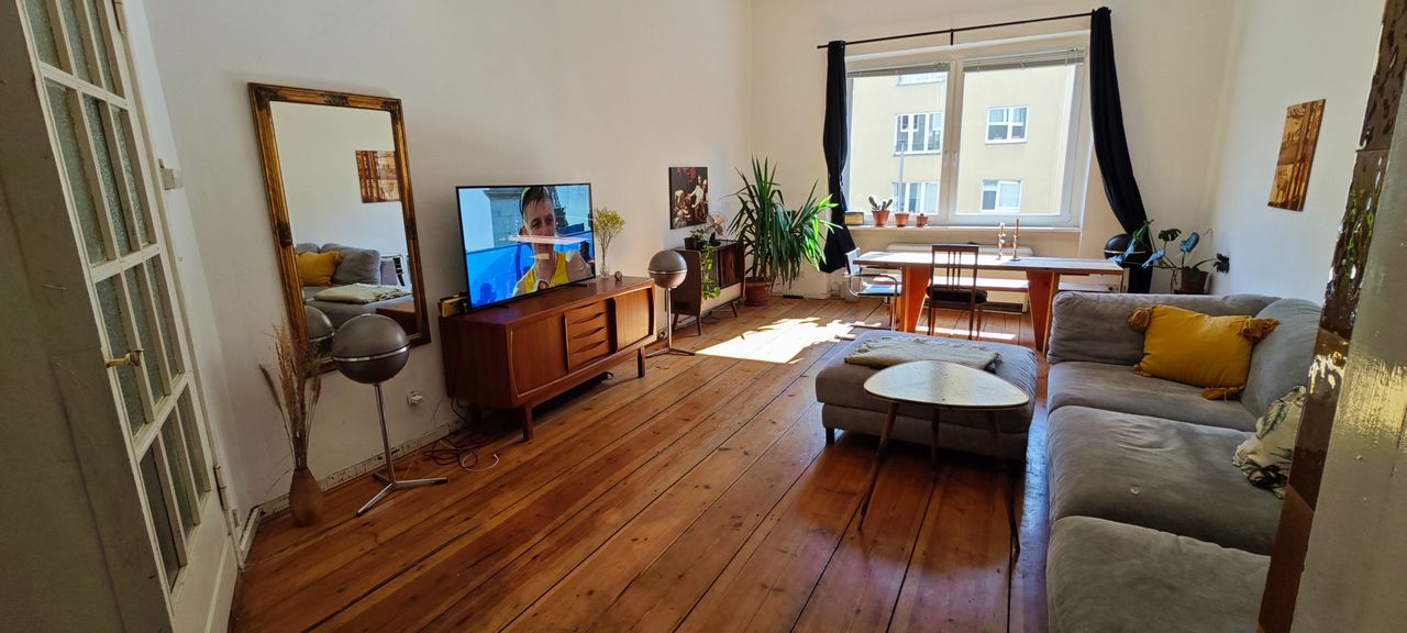 Das Wohnzimmer geht zur Hauptstraße hin. Der Rest der Wohnung befindet sich im ruhigen Seitenflügel.