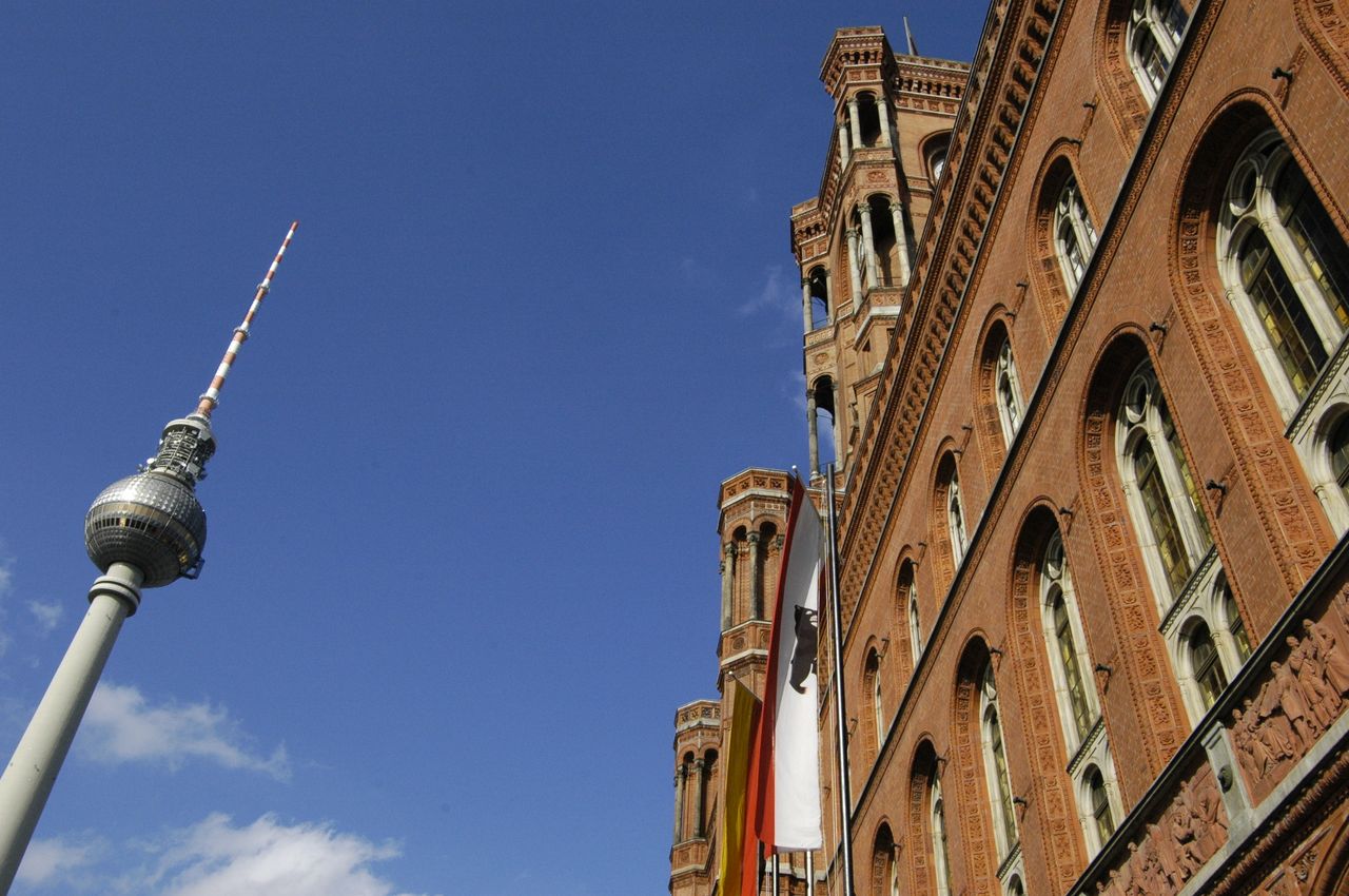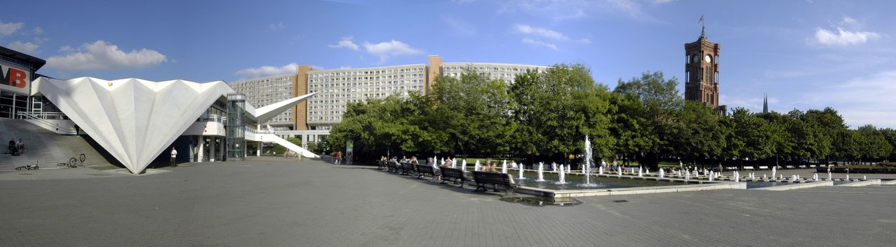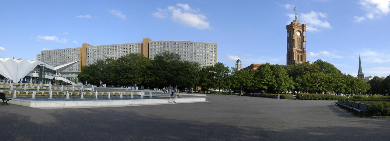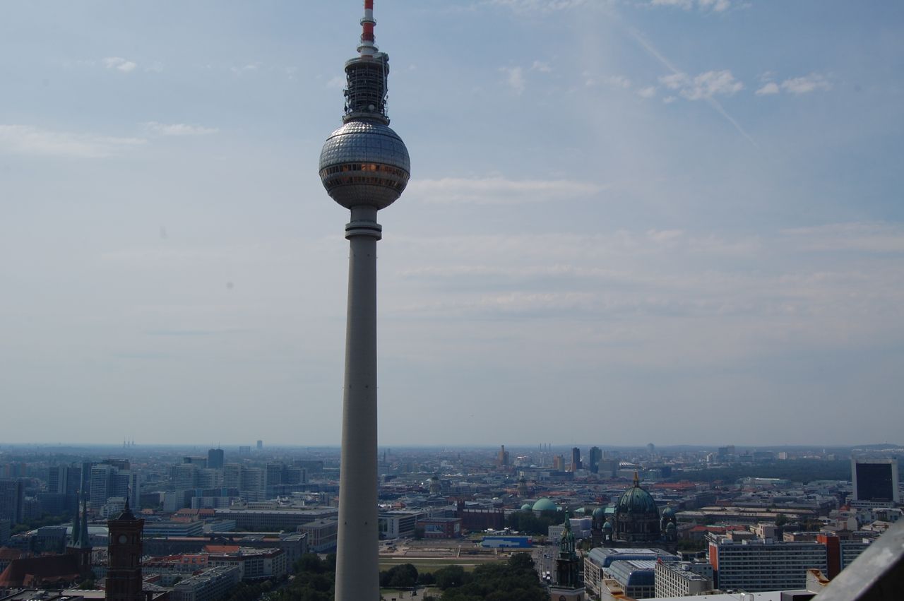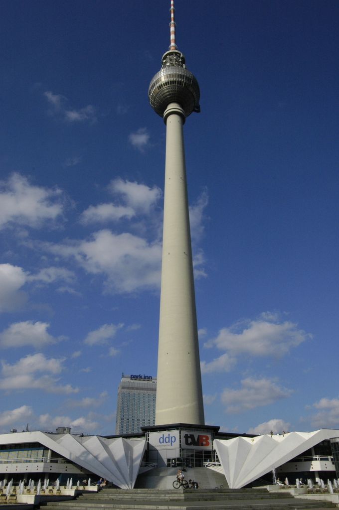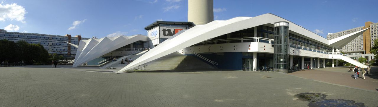 Der Fernsehturm, nach nur 53 Monaten Bauzeit am 3. Oktober 1969 in Betrieb genommen, ist ein städtebauliches sowie politisches Symbol. In Verbindung mit dem naheliegenden Palast der Republik sollte hier ein weit sichtbares, repräsentatives Bauwerk für den sozialistischen Teil Deutschlands entstehen.