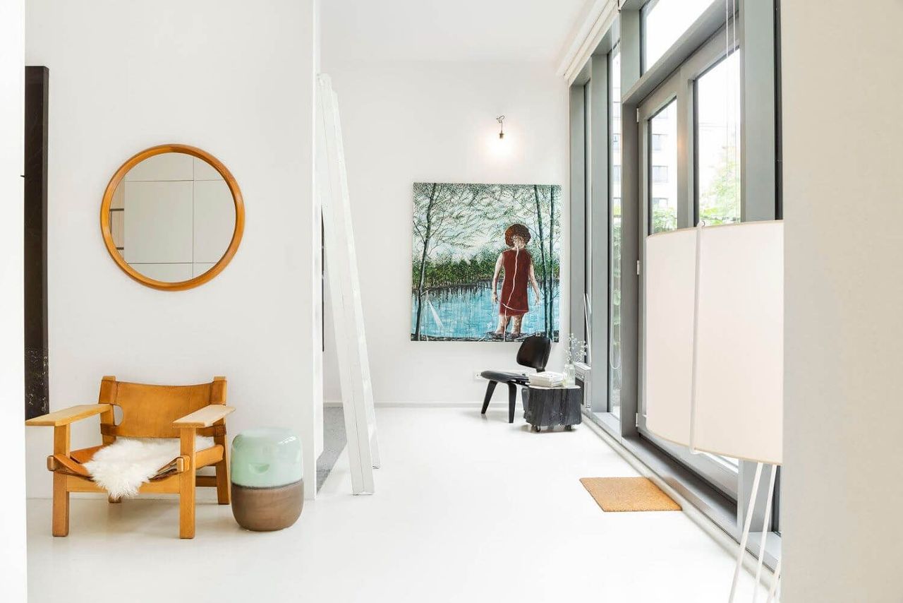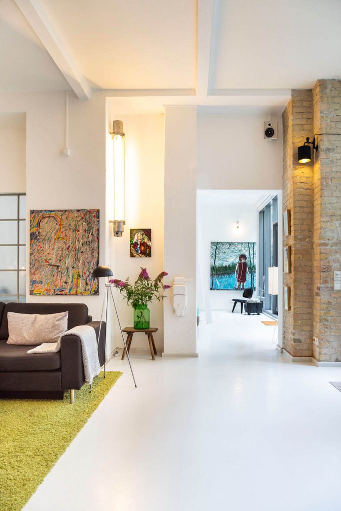 Was früher eine ehemalige Wollfabrik war, die nach dem Fall der Berliner Mauer verlassen wurde, ist heute das geschmackvoll renovierte Dachgeschoss und Malatelier eines etablierten dänischen Künstlers. Während in der Theorie ein ausgebleichter Raum kalt sein sollte, erzählt die visuelle Realität eine ganz andere Geschichte. Das ganz in Weiß gehaltene Interieur erweist sich als die perfekte Leinwand für einen wahnsinnig kühlen Raum mit 4 Meter hohen Decken, offenem Design, modernen und klassischen Möbeln und einer großzügigen Terrasse. Ein fertiges Set, das nie veraltet sein wird.