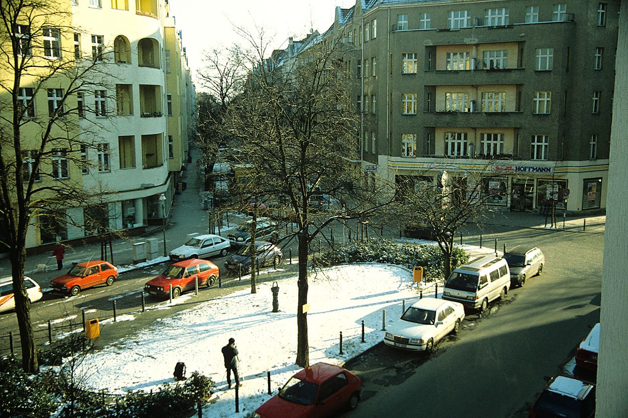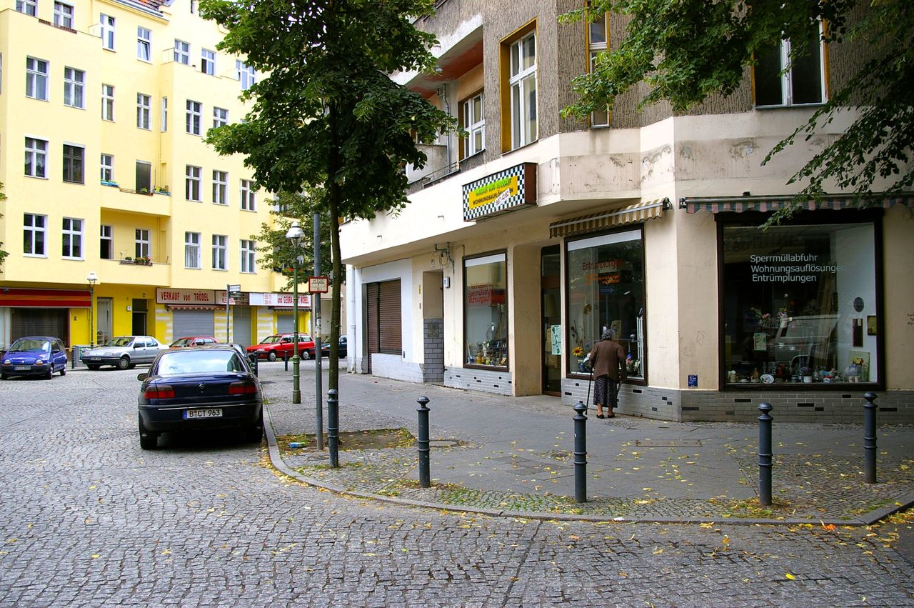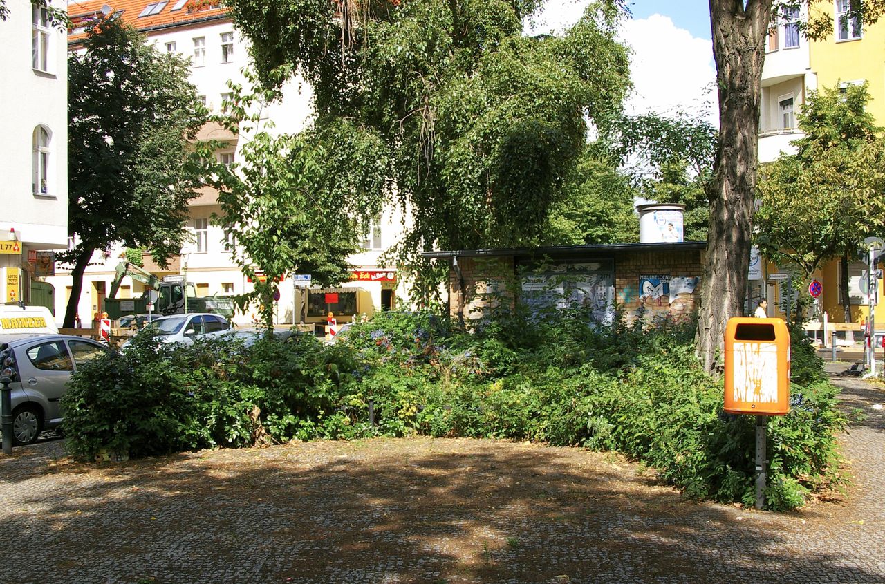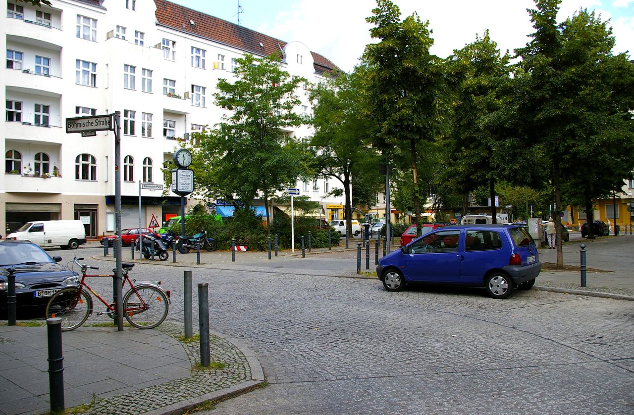 Kleiner Platz im ruhigen Teil von Neukölln, Wohnhäuser aus der Gründerzeit, teils renoviert