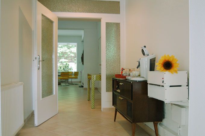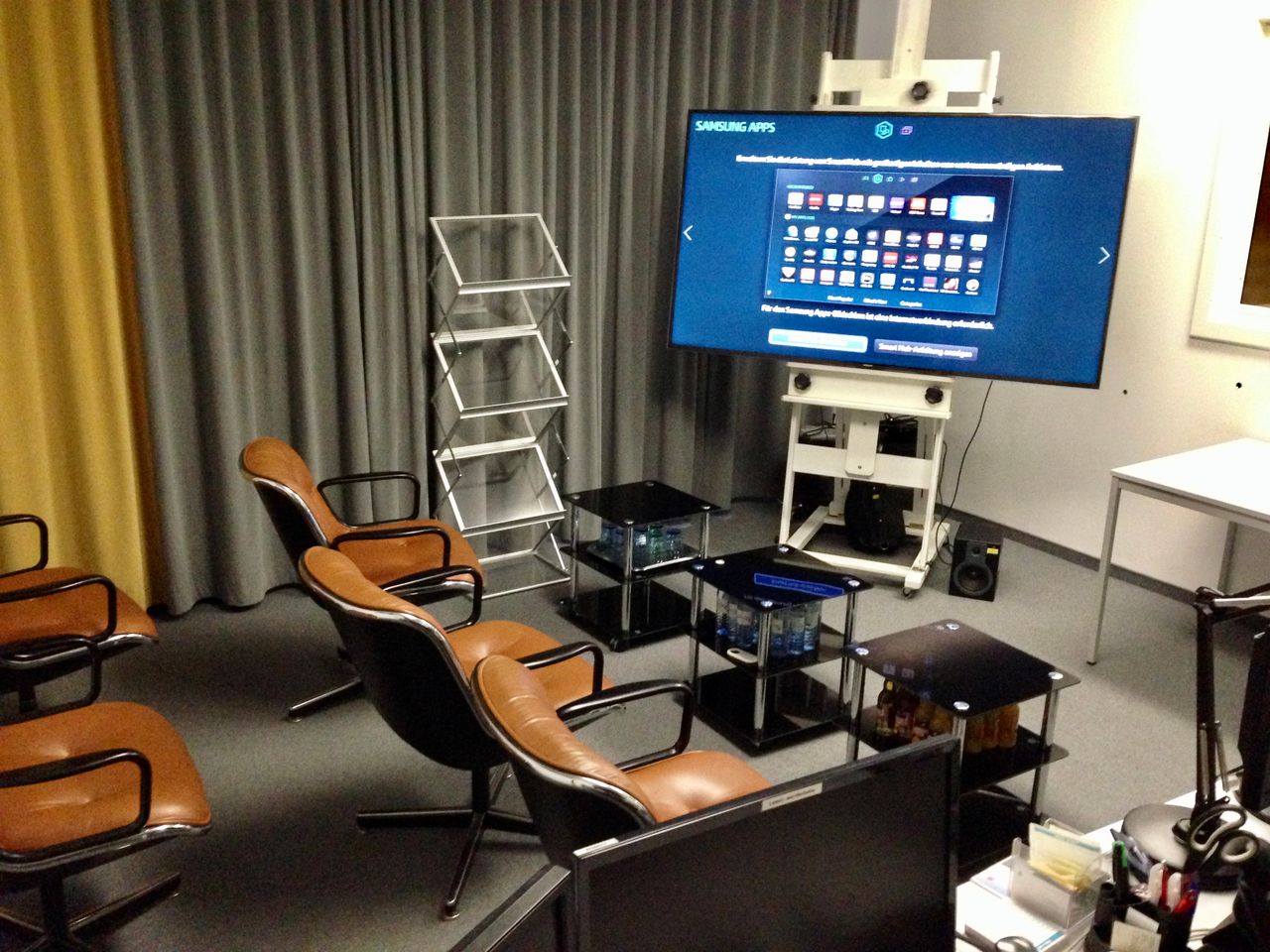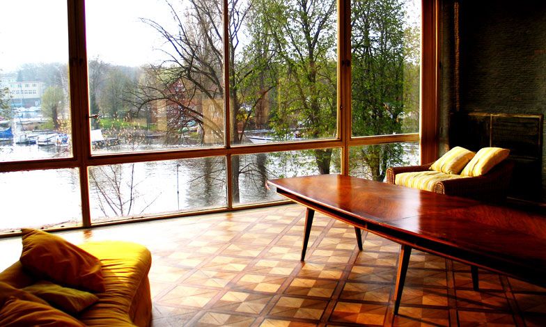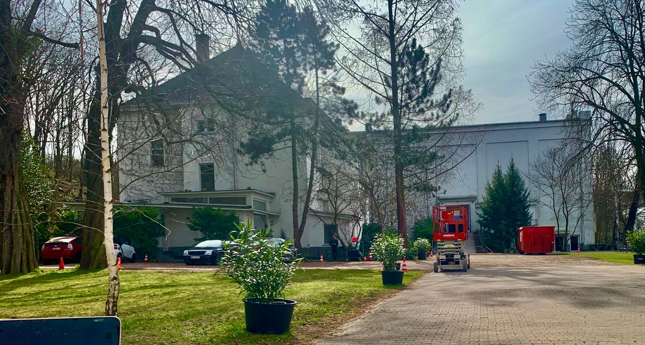 Ehemalige Stuckvilla, modernisiert und im Stile der 50/60er Jahre erweitert mit schickem Eingangsbereich (50/60er Jahre Moderne), Kino, Tonstudios und Büro- und Konferenzräumen. Der große Konferenzraum ("Havelzimmer") hat eine spektakuläre "floor to cieling" Fensterfront, direkt mit Blick auf den See und die kleinen Yachthäfen am Stößensee. Des weiteren hat er schwere klassizistische Holztüren und einen edlen, dekorativen Parkettfußboden.