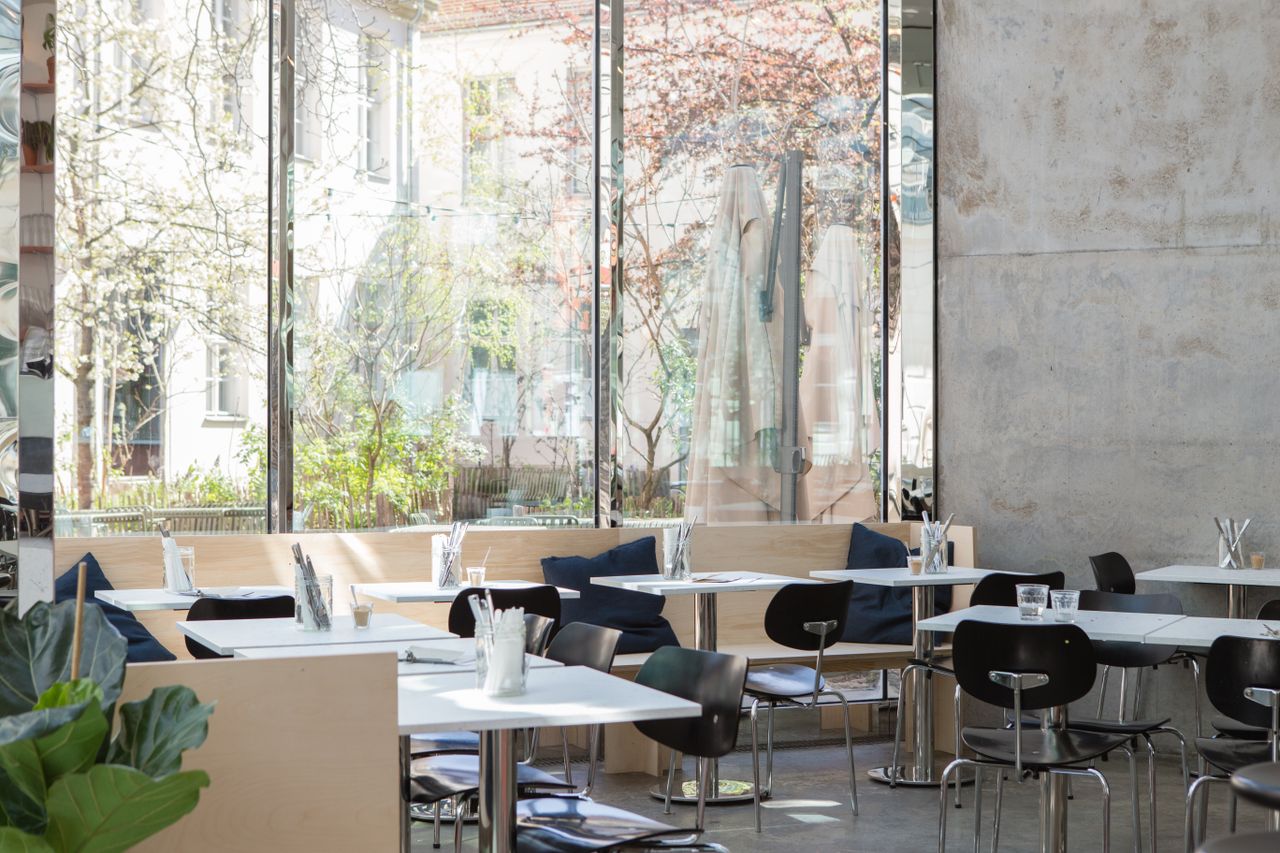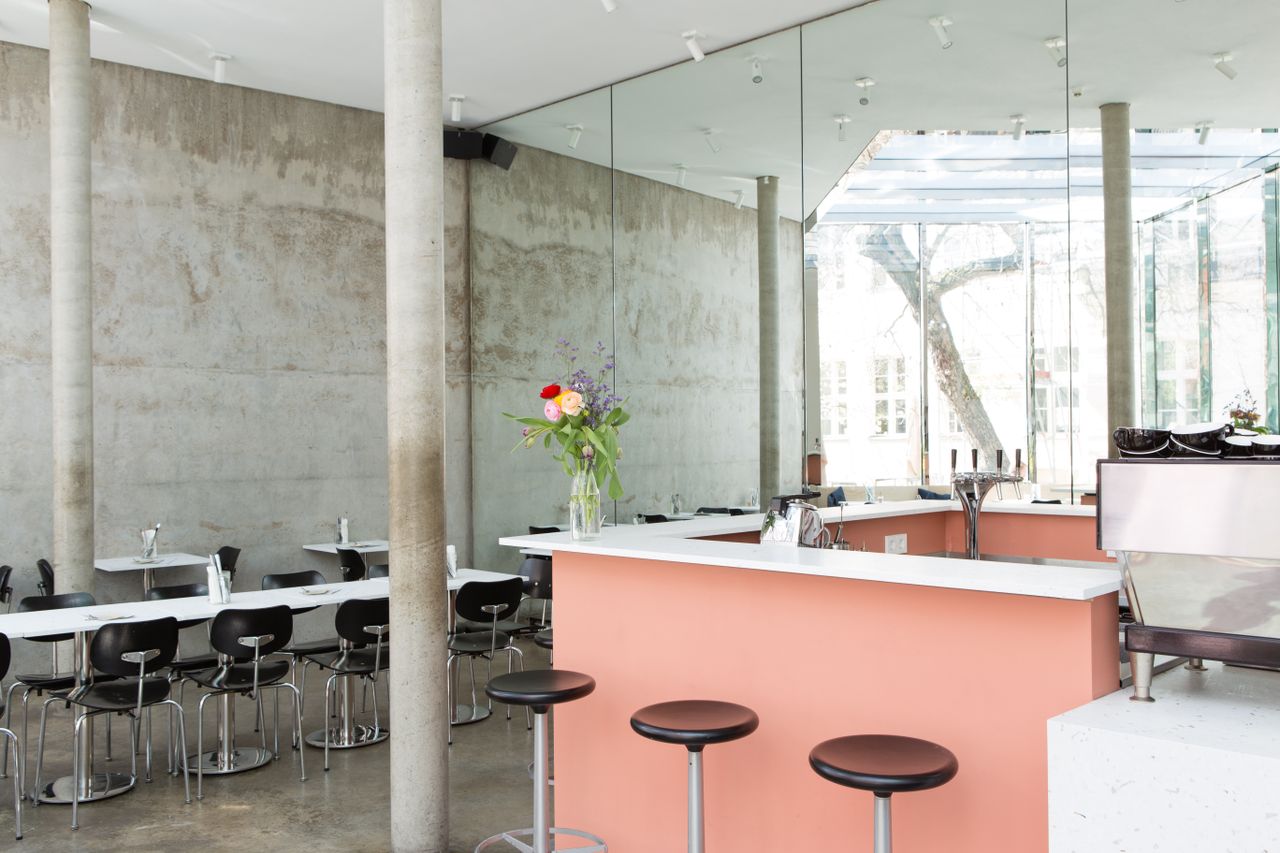 Café and Bar in Dan Graham’s famous pavillion at the base of KW Institute for Contemporary Art in Berlin-Mitte.