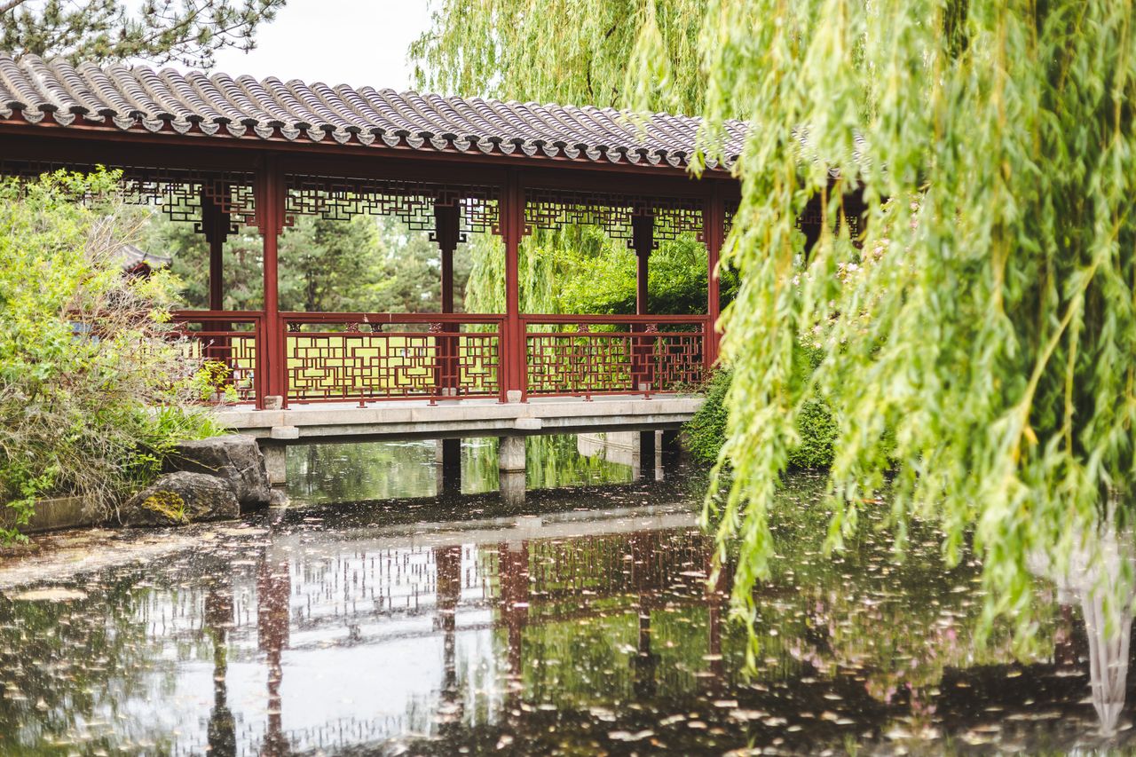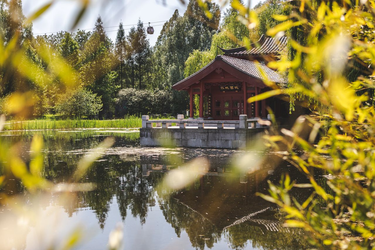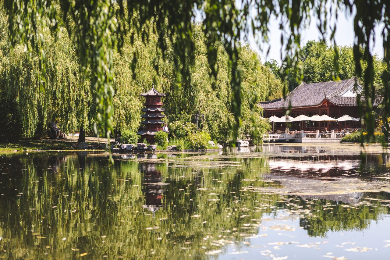 Der Chinesische Garten ist ein originales Werk chinesischer Gartenkultur. Im Zentrum des Gartens befindet sich der „Spiegel des Himmels“: ein 4.500 qm großer See, der von reich bepflanzten Hügellandschaften, diversen Brücken, verschiedenen Gebäuden und Plätzen umgeben ist.