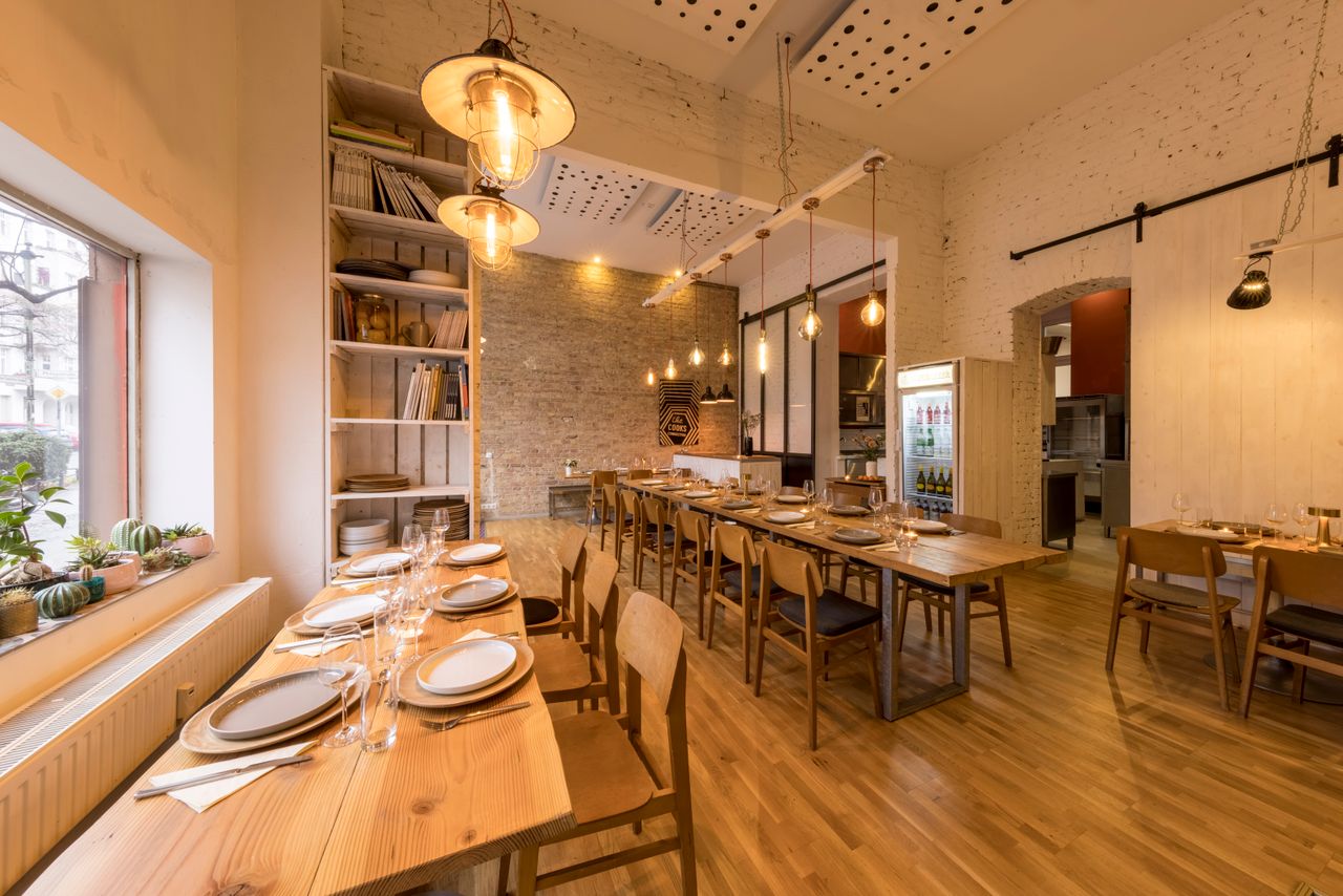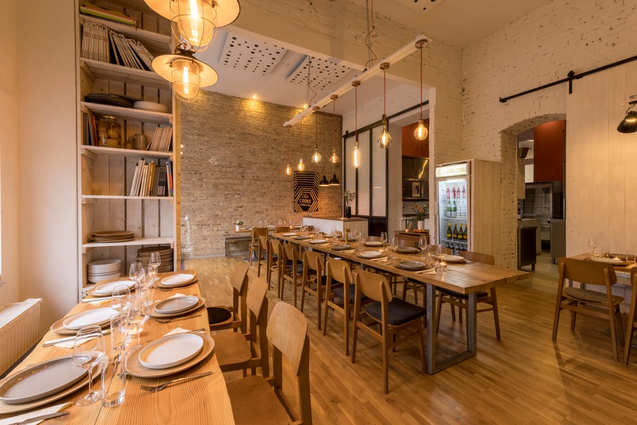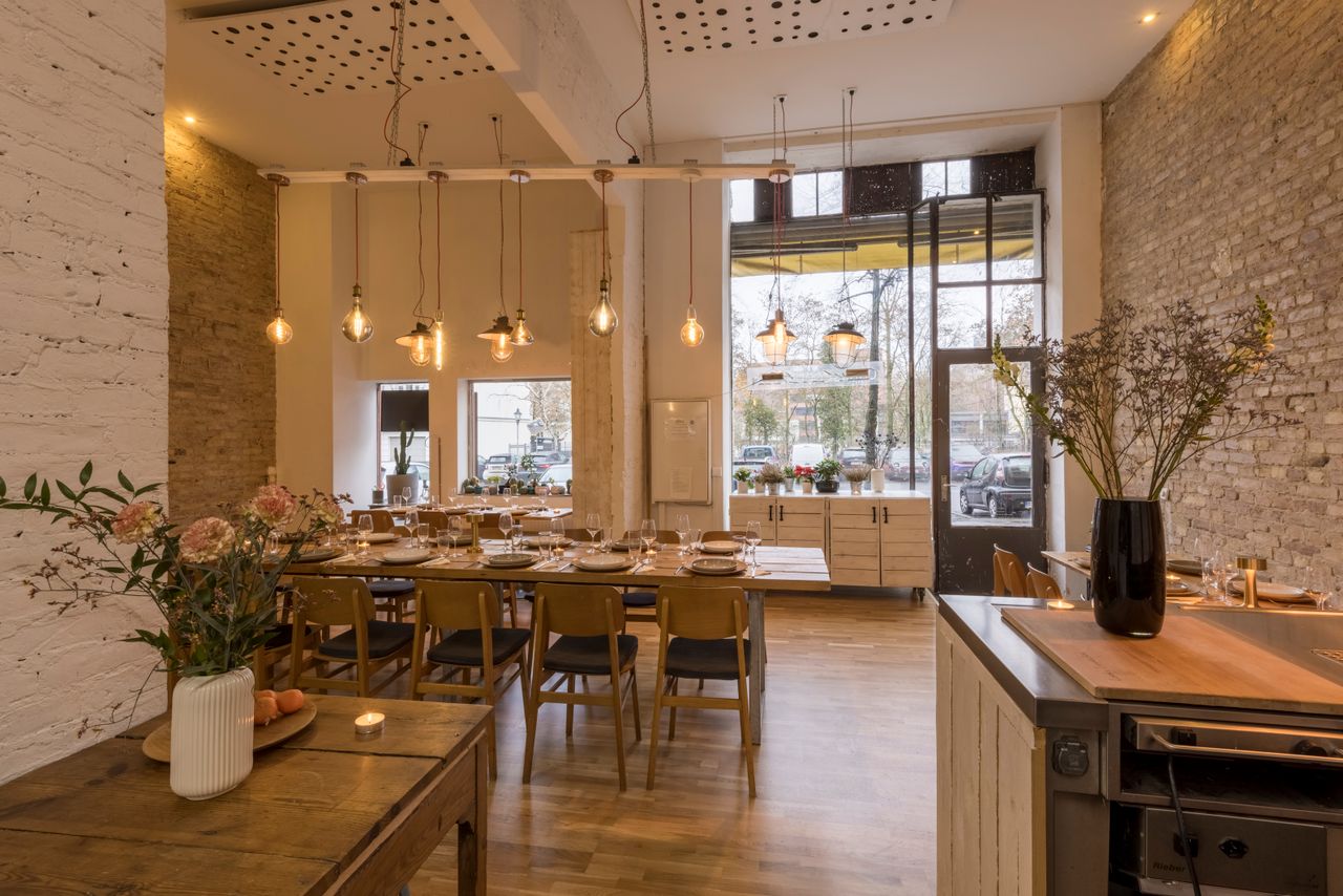 Die Location ist eine Eventlocation vor allem für Kochkurse und Kochevents. Es gibt einen großen Durchgang zur Küche vom Gastraum aus. Die Küche ist mit mehreren Herden und einer Geschirrspülmaschine ausgestattet. Es gibt einen großen Kühlschrank für Lebensmittel mit Glastür und einen weiteren im Gastraum für Getränke. Die Raumhöhe ist 4,15m.Es gibt ein großes Schaufenster zur Strasse.