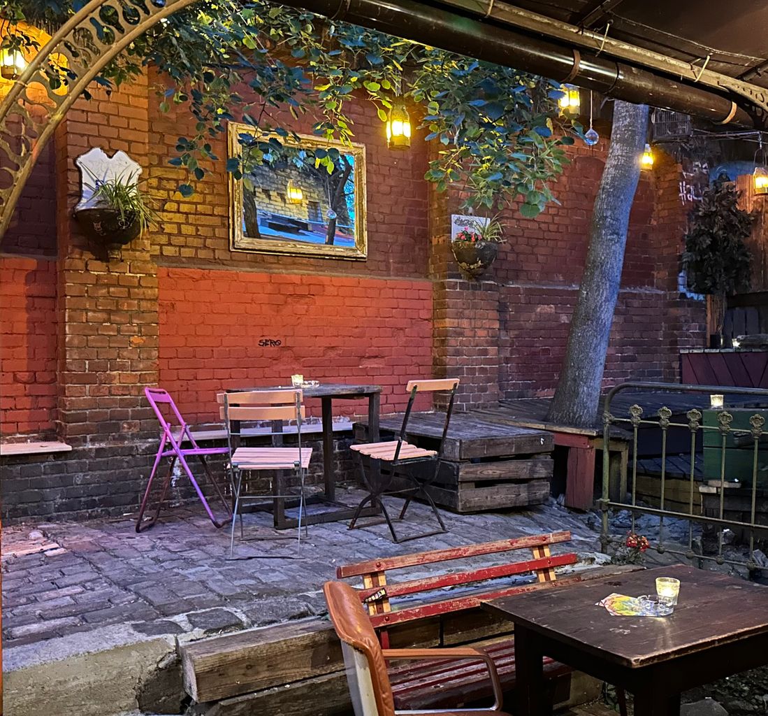 2) lange Bar mit Goldspiegelfront, original Honecker-Kronleuchter aus dem Palast der Republik, vereinzelt schlicht-moderne Podeste, Klavier, DJ-Pult, Bühnenelemente, Gartenschaukel, vielseitige Beleuchtungssituationen, ausgearbeitete Raumakustik, begrünte Galerie uvm - Abgesehen von der Bar ist die Inneneinrichtung mobil
