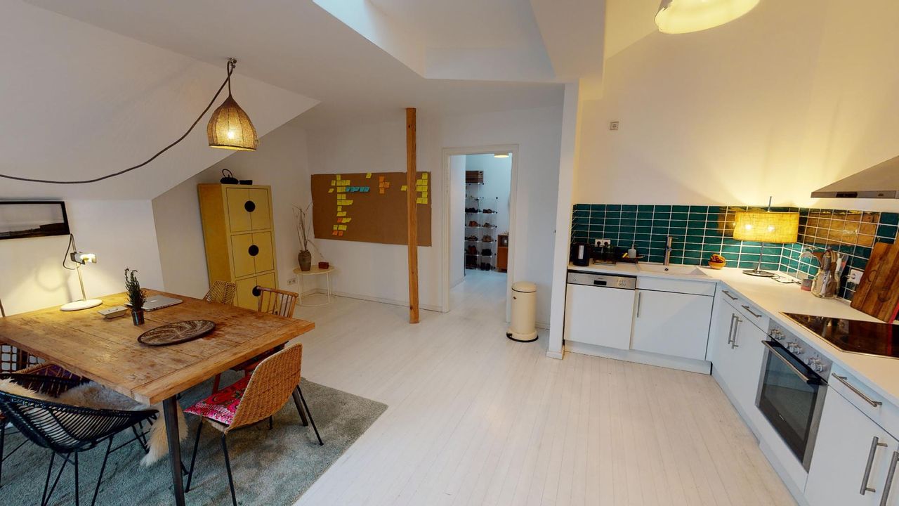 Schönes Dachgeschoss mit grosser Küche und Wohnzimmer. Balkon vorhanden.