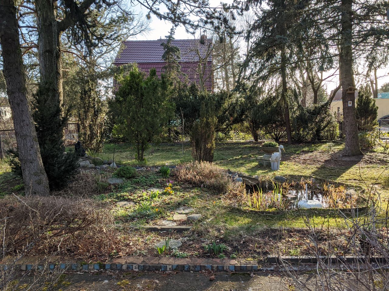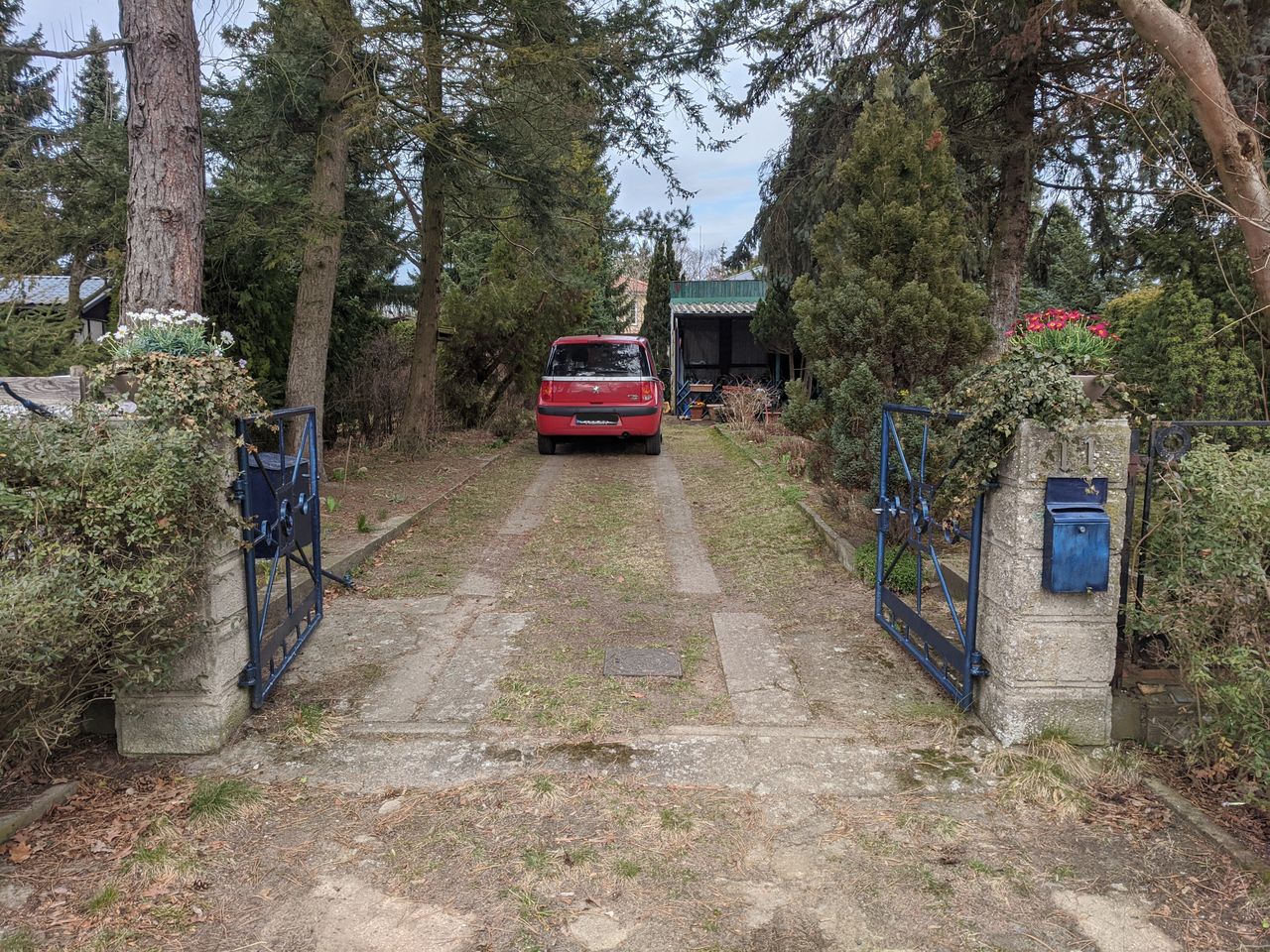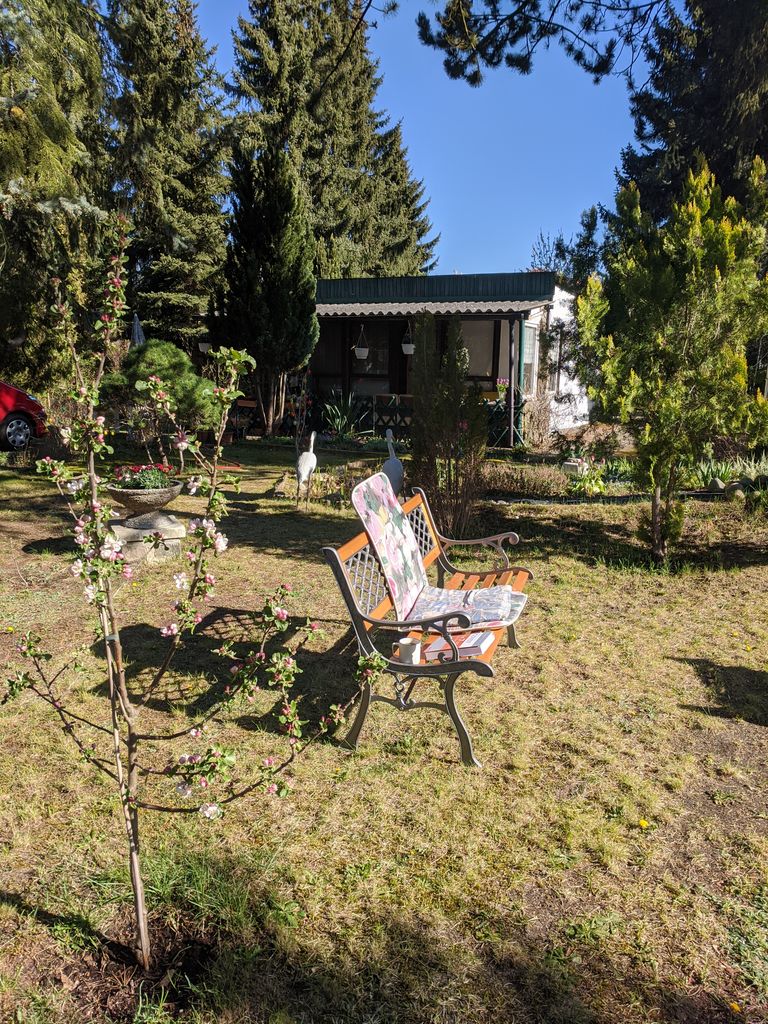 Alter DDR- Bungalow Typ B22 mit zusätzlichen Anbau auf einem Baurundstück mit Garten (800m²). Umgebung sehr grün mit vielen Bäumen. Eine Garage ist ebenfalls auf dem Grundstück vorhanden.