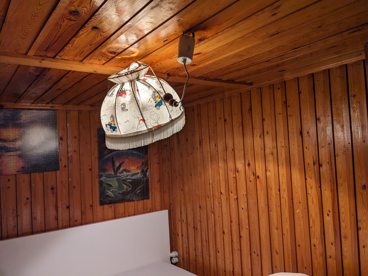 Die Fassade ist mit einer PVC-Verschalung verkleidet, innen gibt es Holzverkleidungen und Raufasertapete. Die Möbel sind teils noch aus DDR-Bestand.