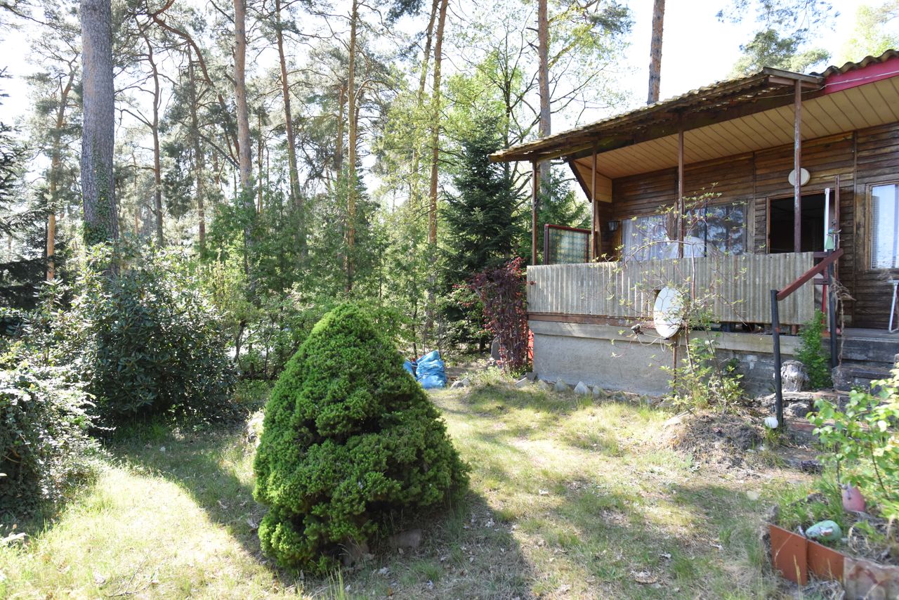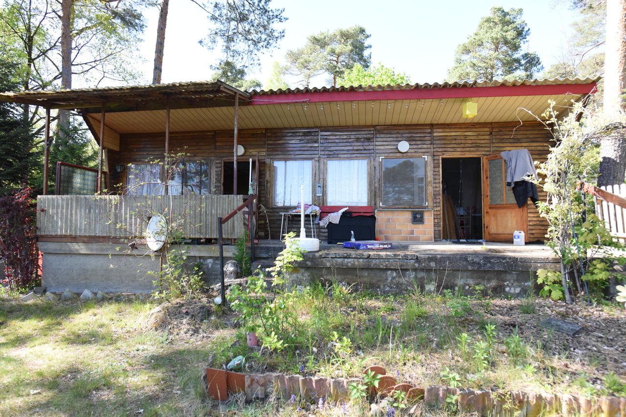 DDR Datsche mit Blick auf See, gegen Absprache kann auch der Steg und ein Ruderboot mitbenutzt werden.