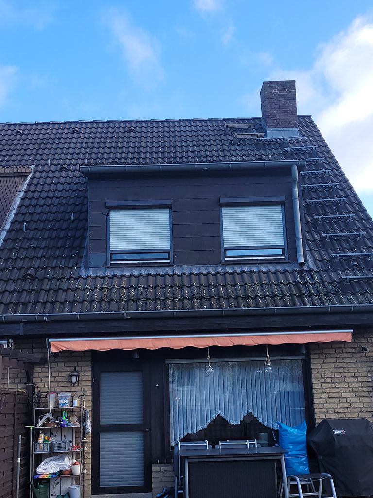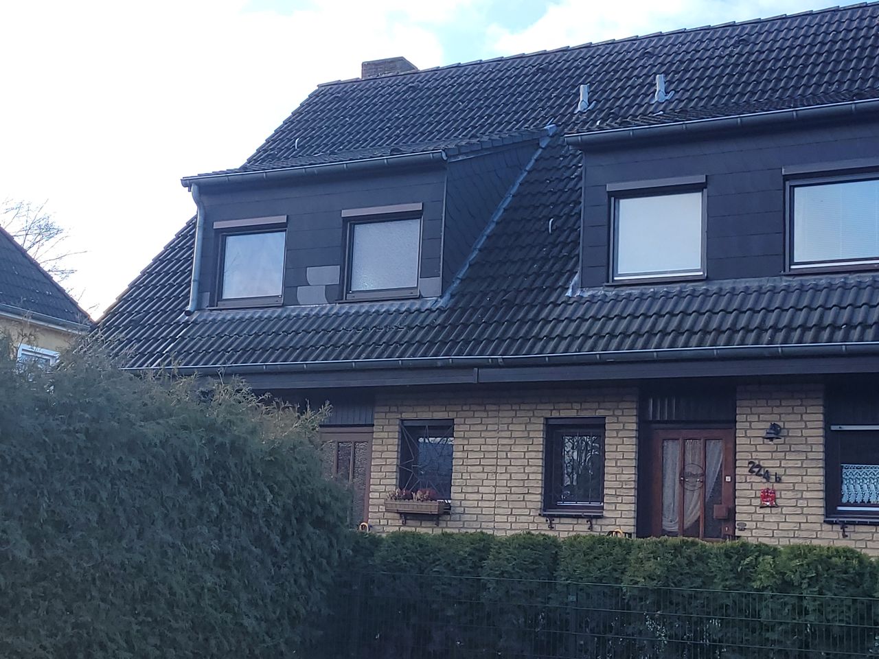 Obergeschoss: großes Elternschlafzimmer mit Doppelbett und Einbauschränken an 2 Wänden, Fremdenzimmer, Bad mit WC und Wanne, alle Räume mit Gauben
