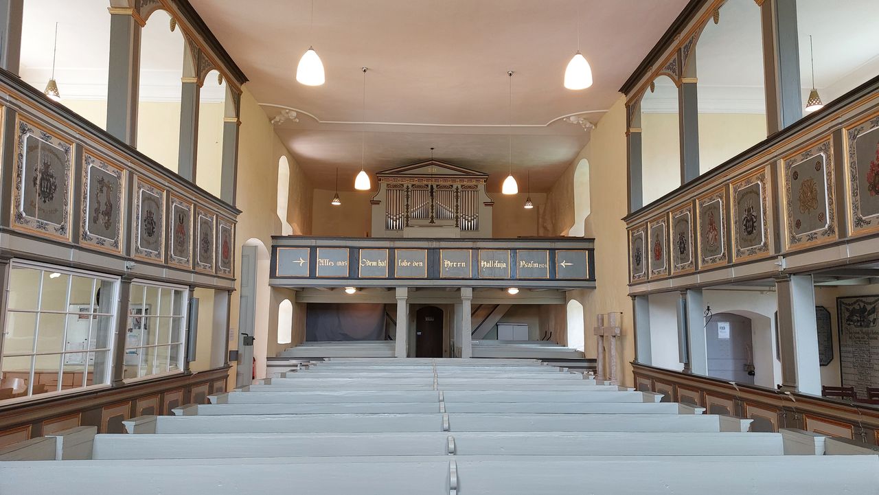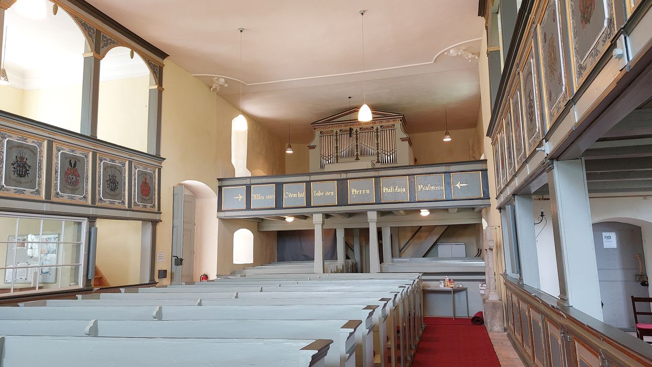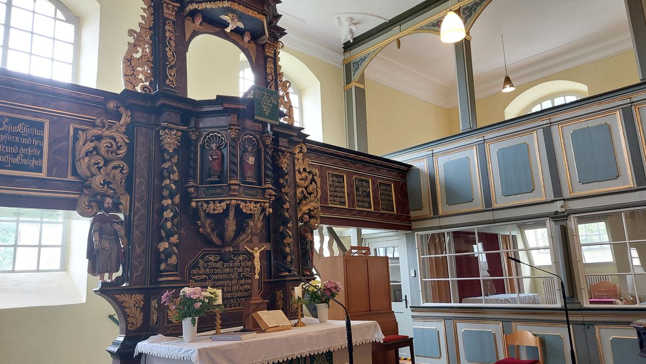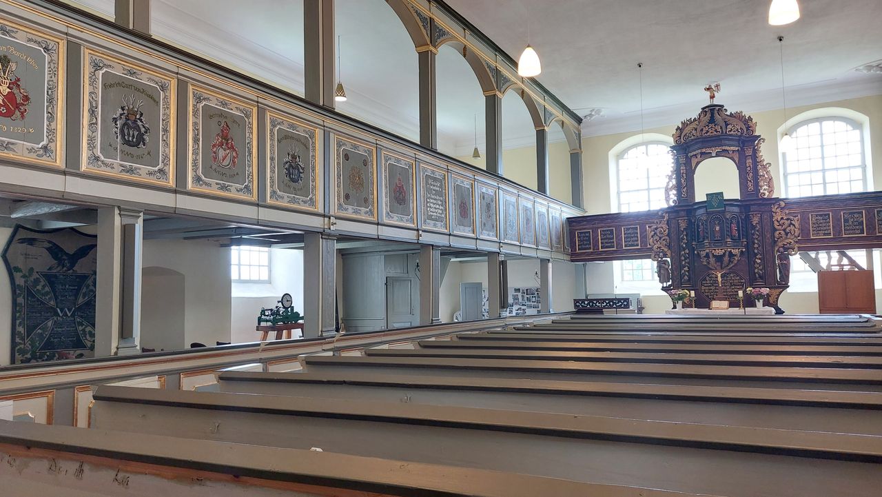 "Die als die älteste Kirche des Westhavellands[5] geltende Dorfkirche wurde im Kern in der zweiten Hälfte des 15. Jahrhunderts errichtet, jedoch werden Teile der Kirche als wesentlich älter erachtet.[6] Sie vereint mehrere Baustile; so ist der ältere aus Feldstein errichtete westliche Teil des Kirchenschiffes dem spätgotischen Feldsteinbau zuzuordnen. Querturm und östliches Kirchenschiff von 1739 sind aus Backstein und werden der Backsteingotik zugeordnet." (zi. nach: de.wikipedia.org)