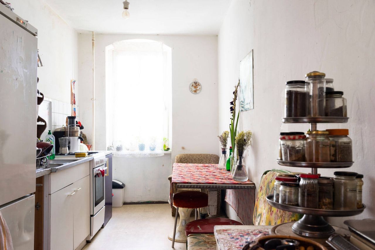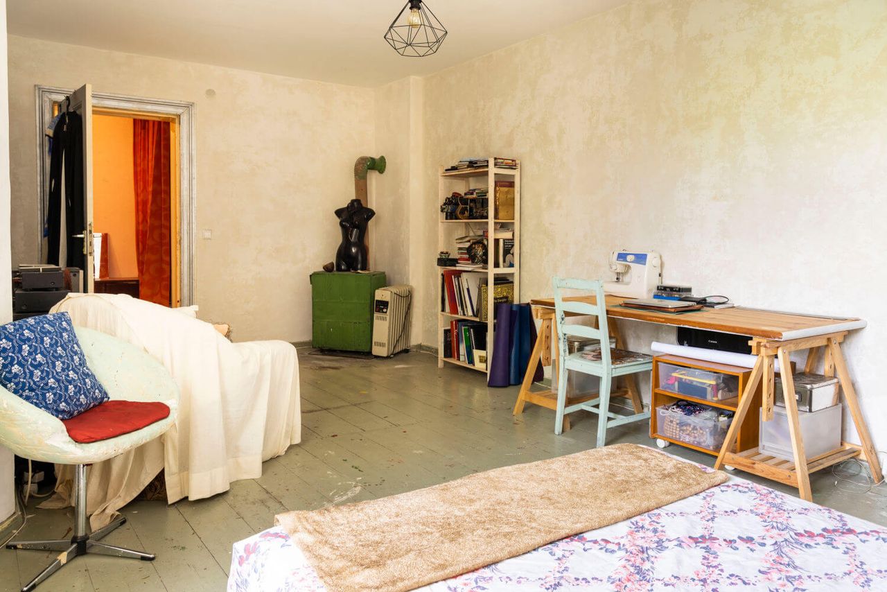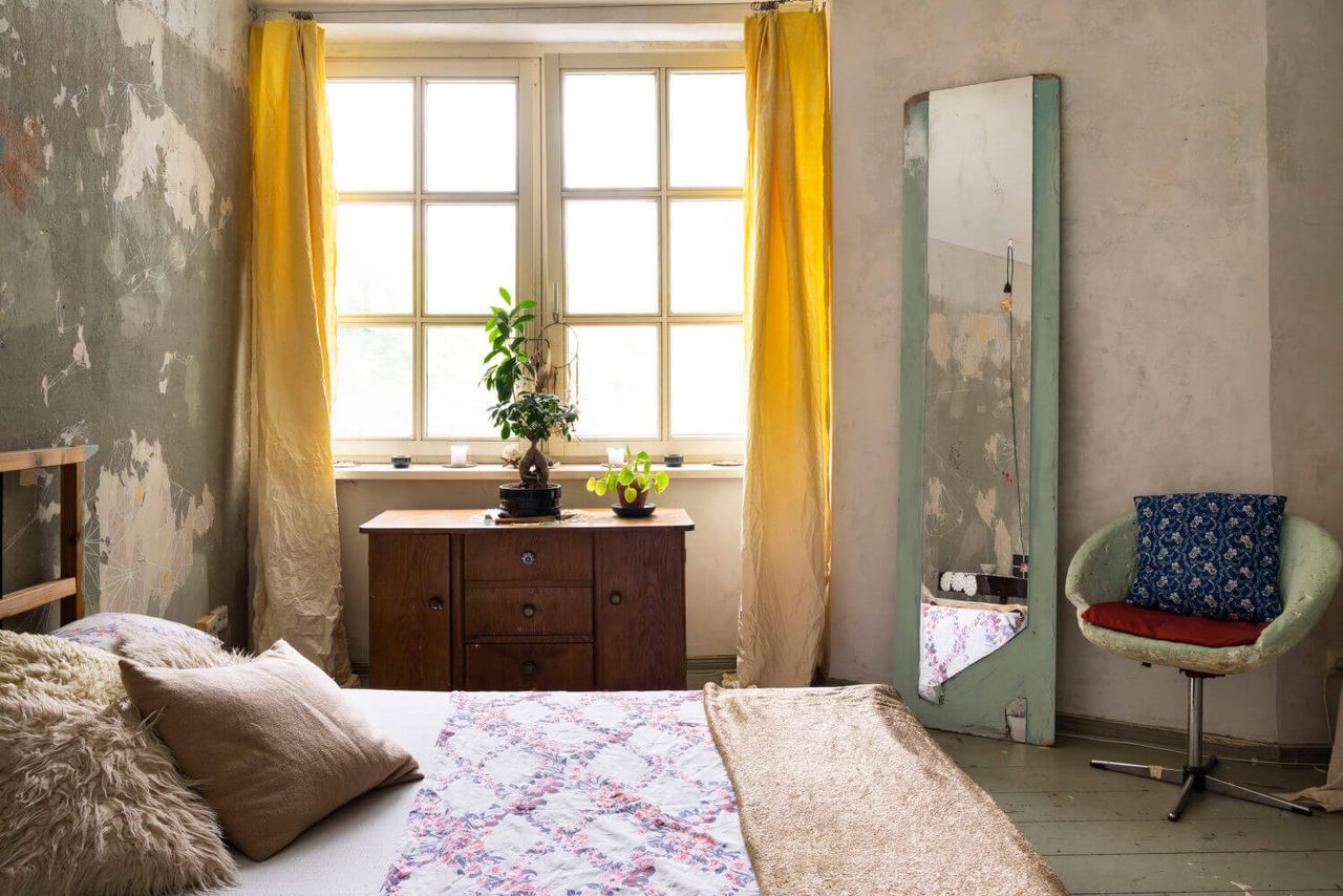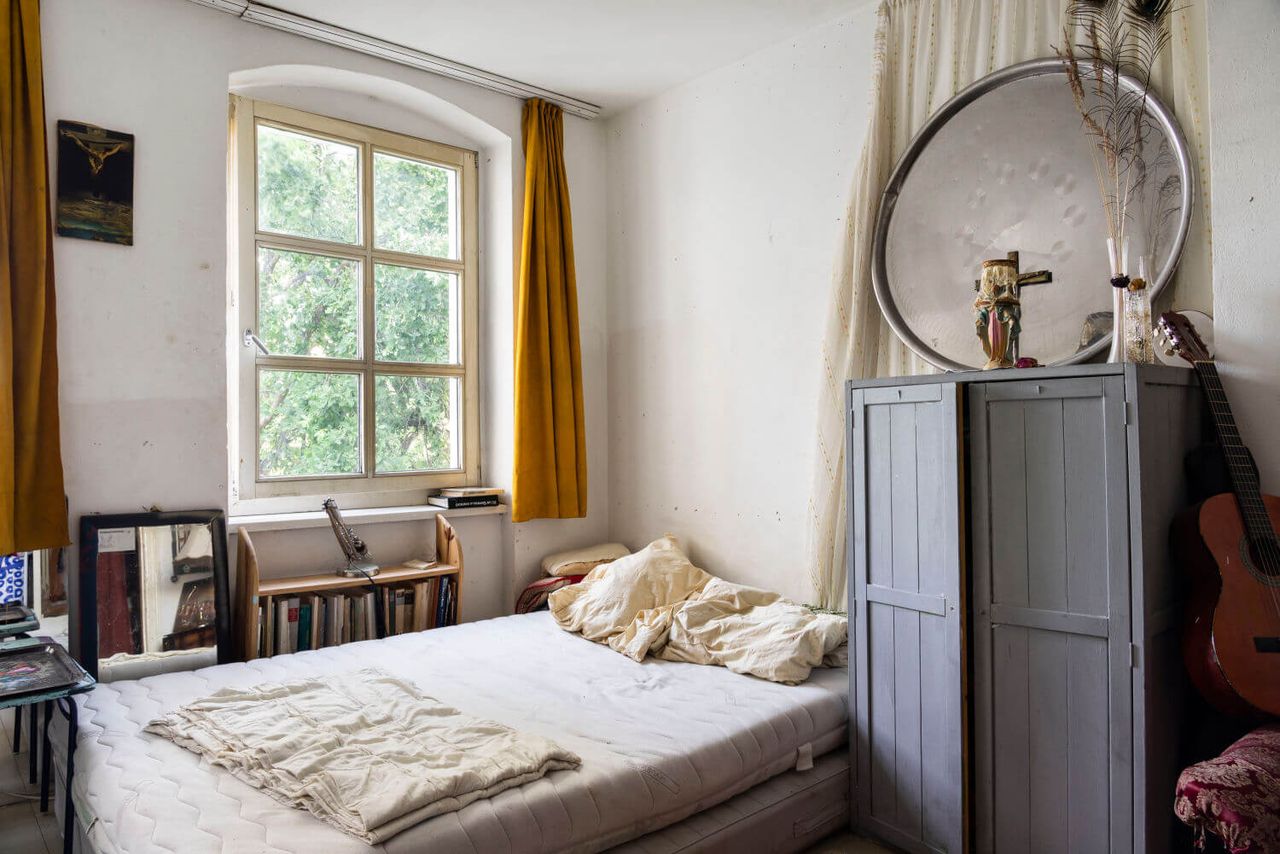 Taking inspiration from her own work as a jewellery designer, the owner of this Home Studio has scratched the bedroom walls with the jagged forms of crystals and filled the entire space with eclectic embellishments . The spacious green-tiled bathroom also leads a double life, additionally playing the part of living room and library, with its sofa, bookshelves, paintings and potted plants. Yet despite the worn furniture, fading fabrics and vintage details, the rust and the rough come together elegantly, creating a set that is authentically shabby chic and interesting to explore.