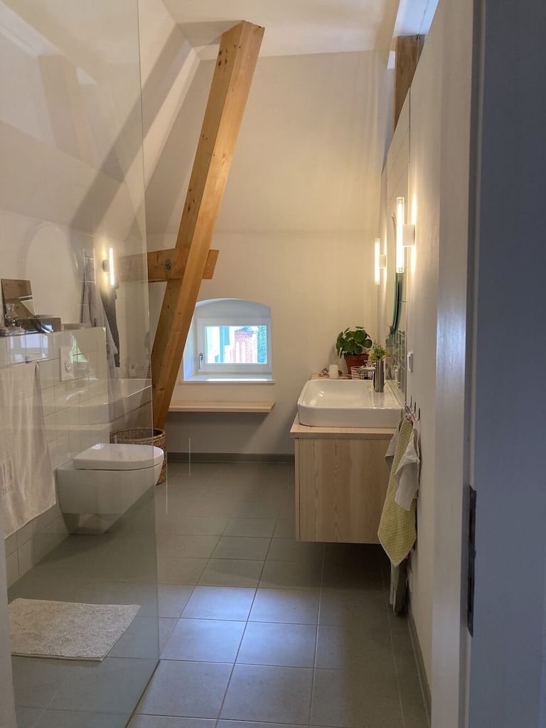 This beautiful loft is located in the 100-year old renowned historical buildings of Beelitz-Heilstätten (1 hour from Berlin Alexanderplatz), a former sanatorium, and well-known as the most famous lost place after the fall of the wall. The building has been completely renovated and luxuriously modernized while keeping its charm and preserving historic details.