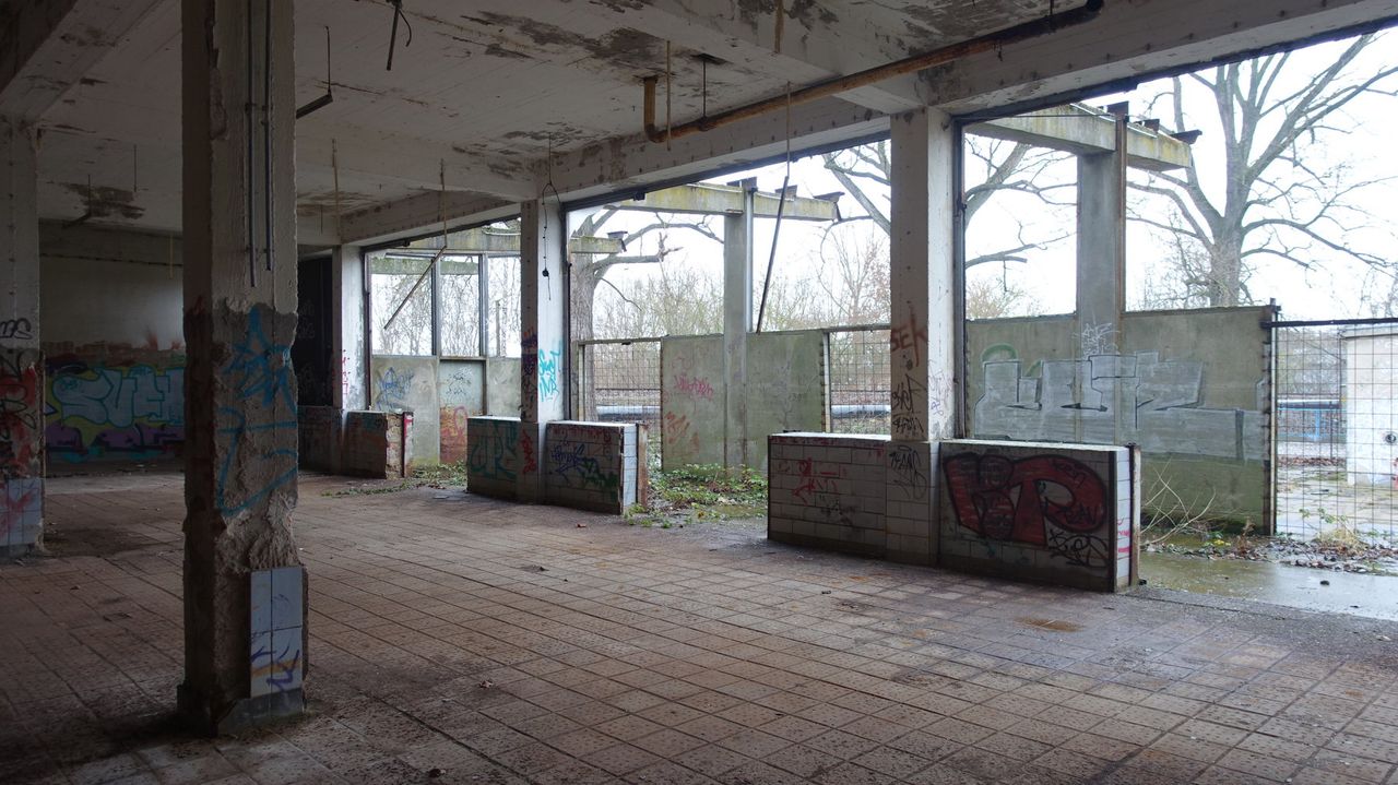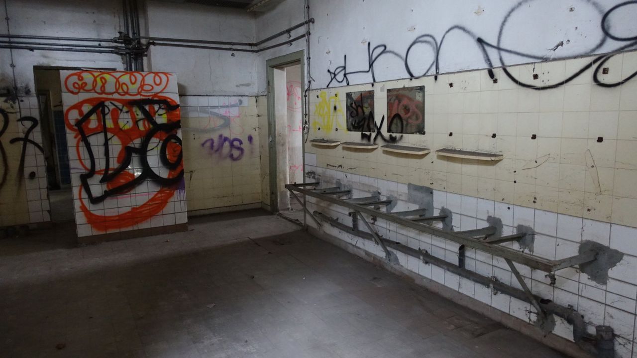 Interessant sind unter anderem die original erhaltene Toilettenanlagen inkl. Sanitärobjekten sowie die Dusch- und Waschräume aus der Nachkriegszeit.