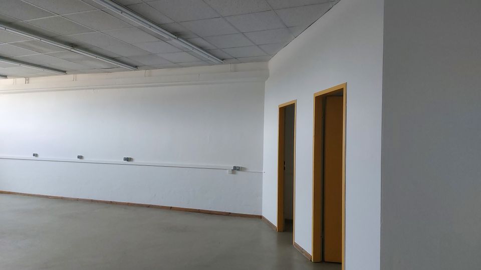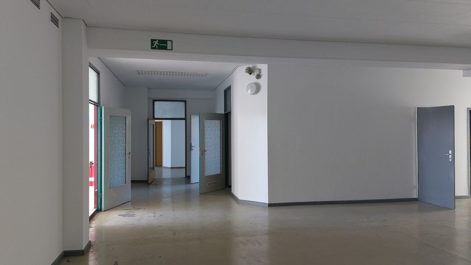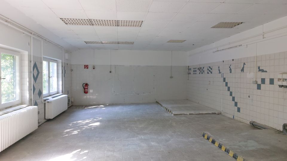 Heizung ist derzeit noch vorhanden. Es gibt Strom und Wasser. Hinterm Gebäude gibt es Möglichkeiten den Fuhrpark abzustellen. Aufstellung von Beleuchtung außerhalb des Gebäudes ist möglich. Das Gebäude hat zwei Etagen und ist vollständig unterkellert. Die Kellerräume Verfügung über eine überdurchschnittliche Höhe.